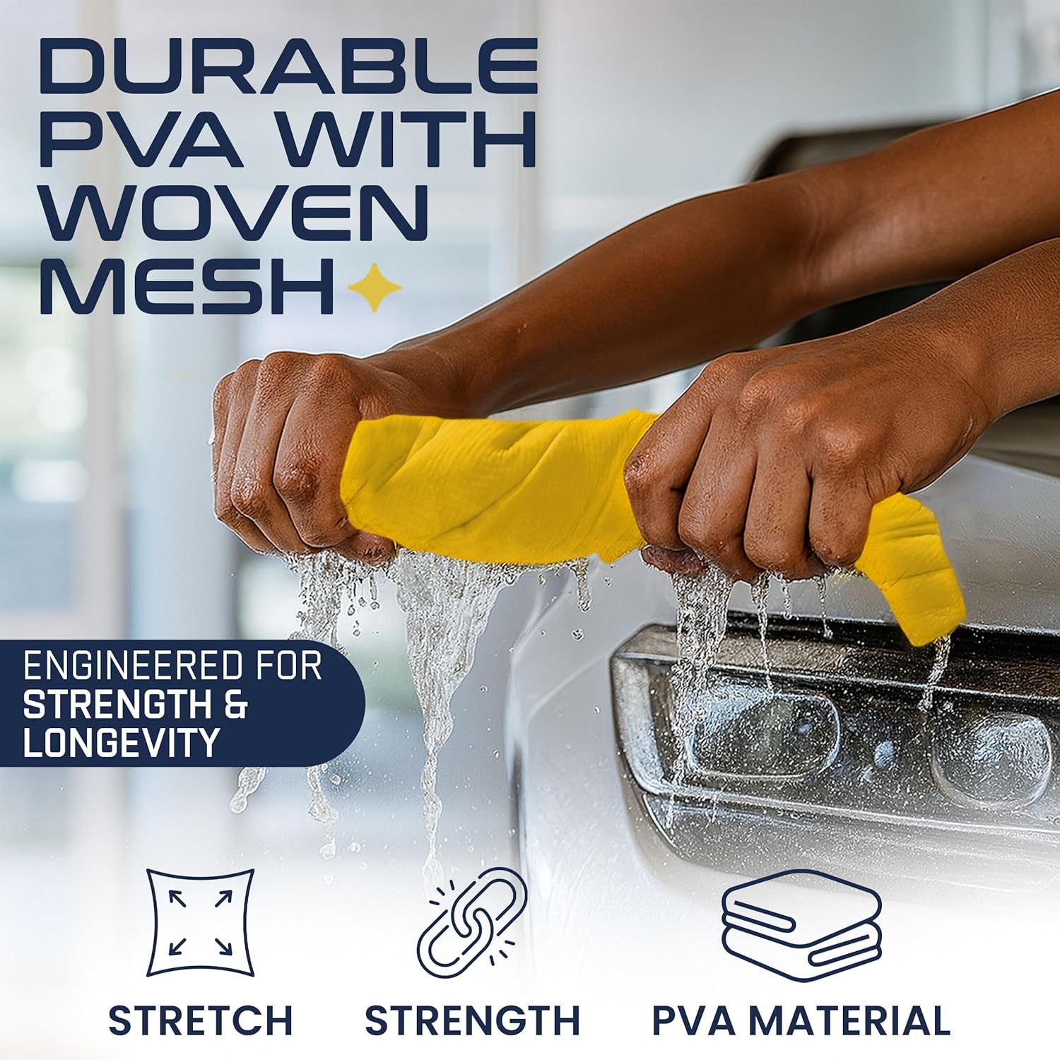 - PREMIUM MATERIAL - Our ultra-absorbent PVA shammy holds several times its weight in water for quick, efficient drying. Its soft, durable texture is scratch-less and streak-less, making it ideal for car & truck paint, boats, & more. Crafted from high-quality PVA, these lint-free towels ensure a pristine, shiny finish without harming your vehicle.