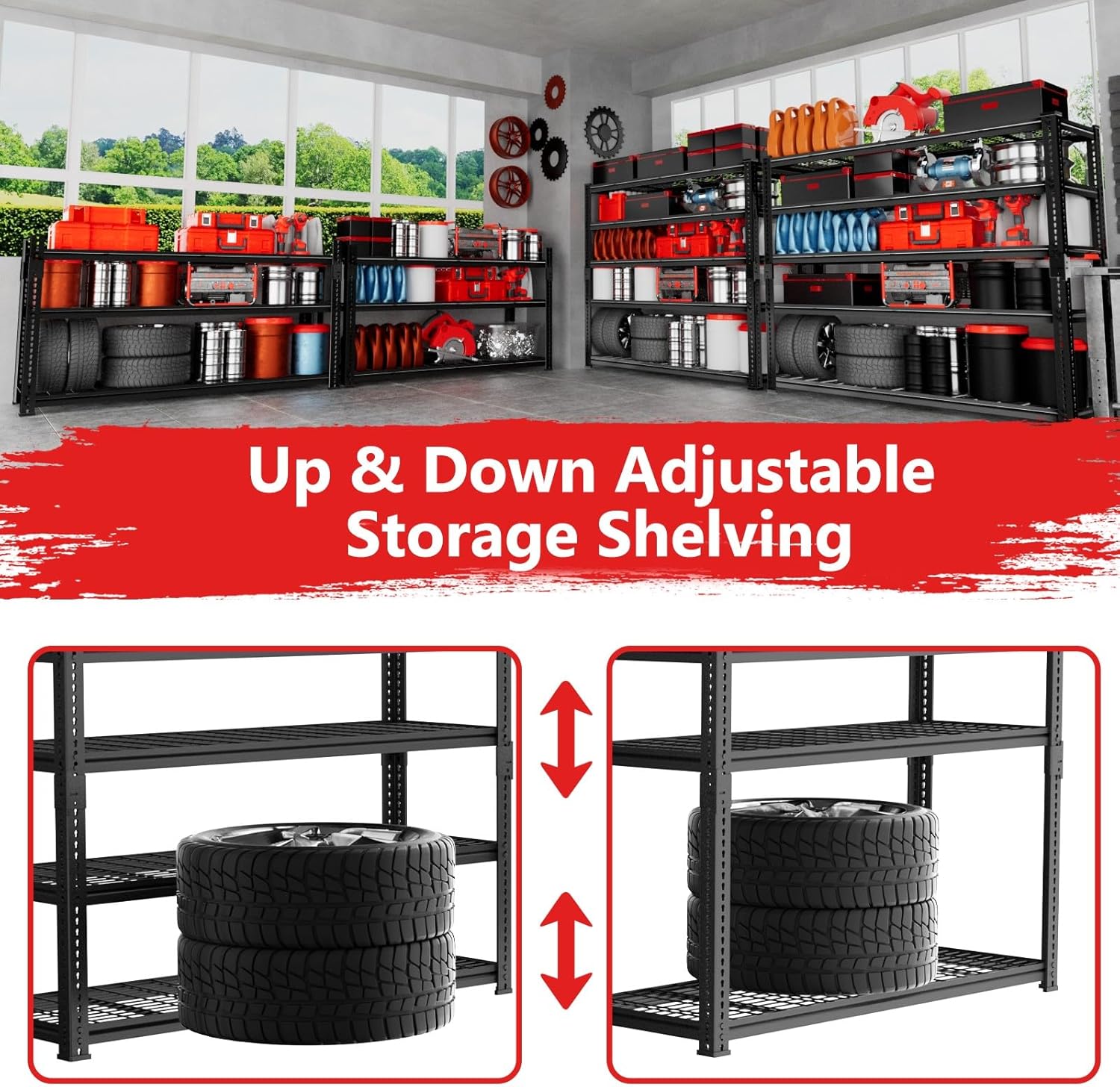 - 2800LBS Heavy Duty Capacity: MODCART's heavy-duty garage shelving is built with robust steel columns, supporting up to 560 lbs per shelf for a total of 2800 lbs. it offers reliable organization for your garage, kitchen, or laundry room