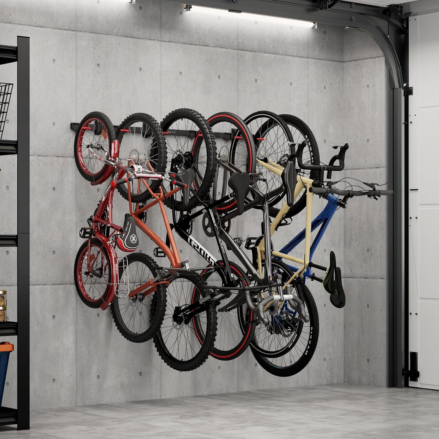 - HIGH CAPACITY BIKE STORAGE – Keep up to 6 bikes organized and off the floor with this space-saving wall-mounted bike rack, ideal for creating an efficient and clutter-free garage or shed.