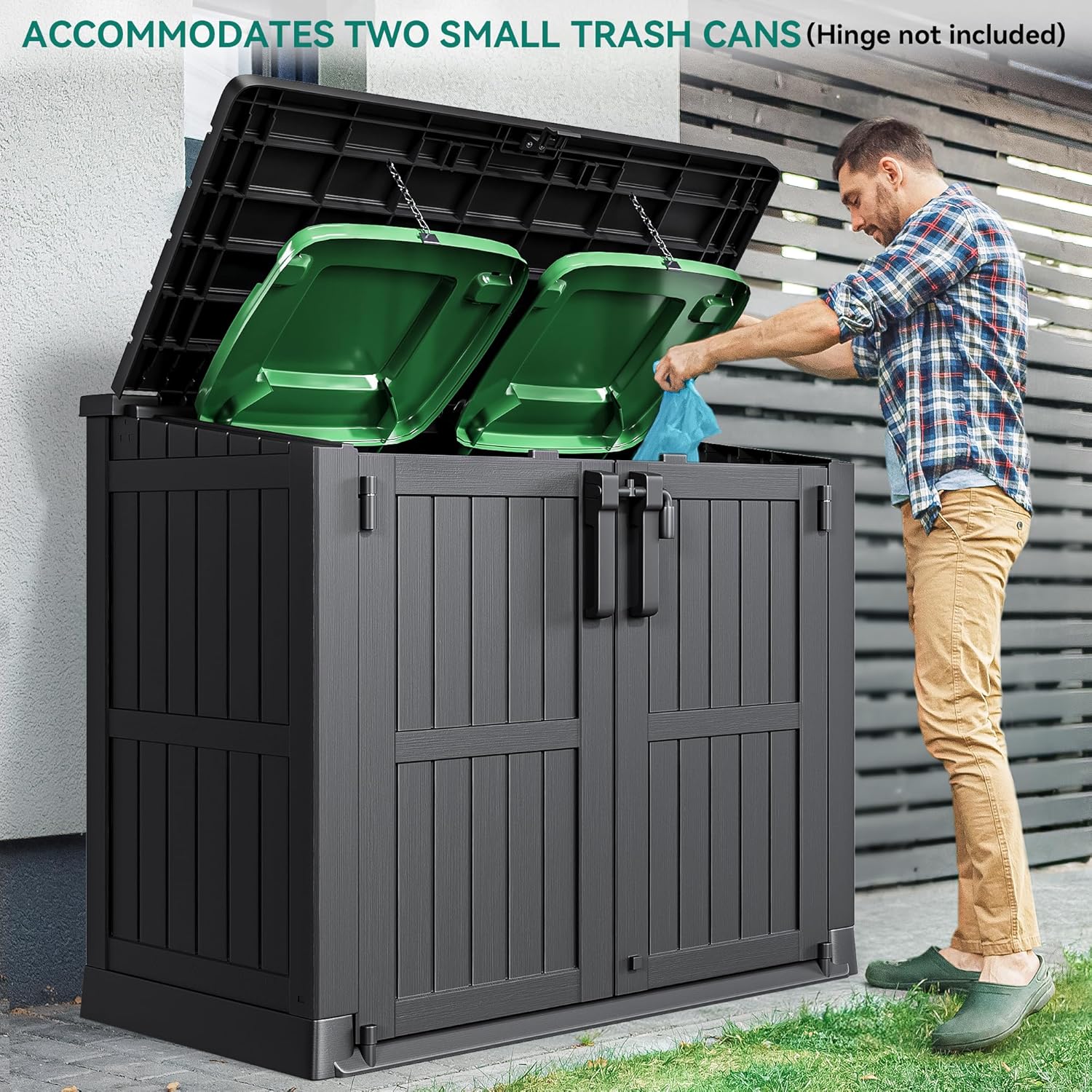 - Weather Protection: The UV-proof resin construction and waterproof lid maintain the storage shed's aesthetic appeal and functionality, even in challenging weather conditions, making cleaning and maintenance a breeze.