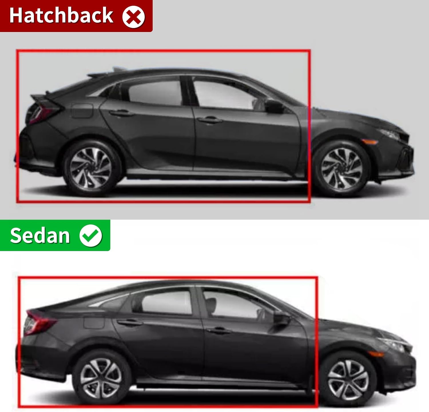 - Fitment : Fits For Honda Civic 4 Door 2016 2017 2018 2019 2020 2021 Sedan Model Only Note : Won't Fit 5 door Hatchback Model or 2 Door Coupe Model