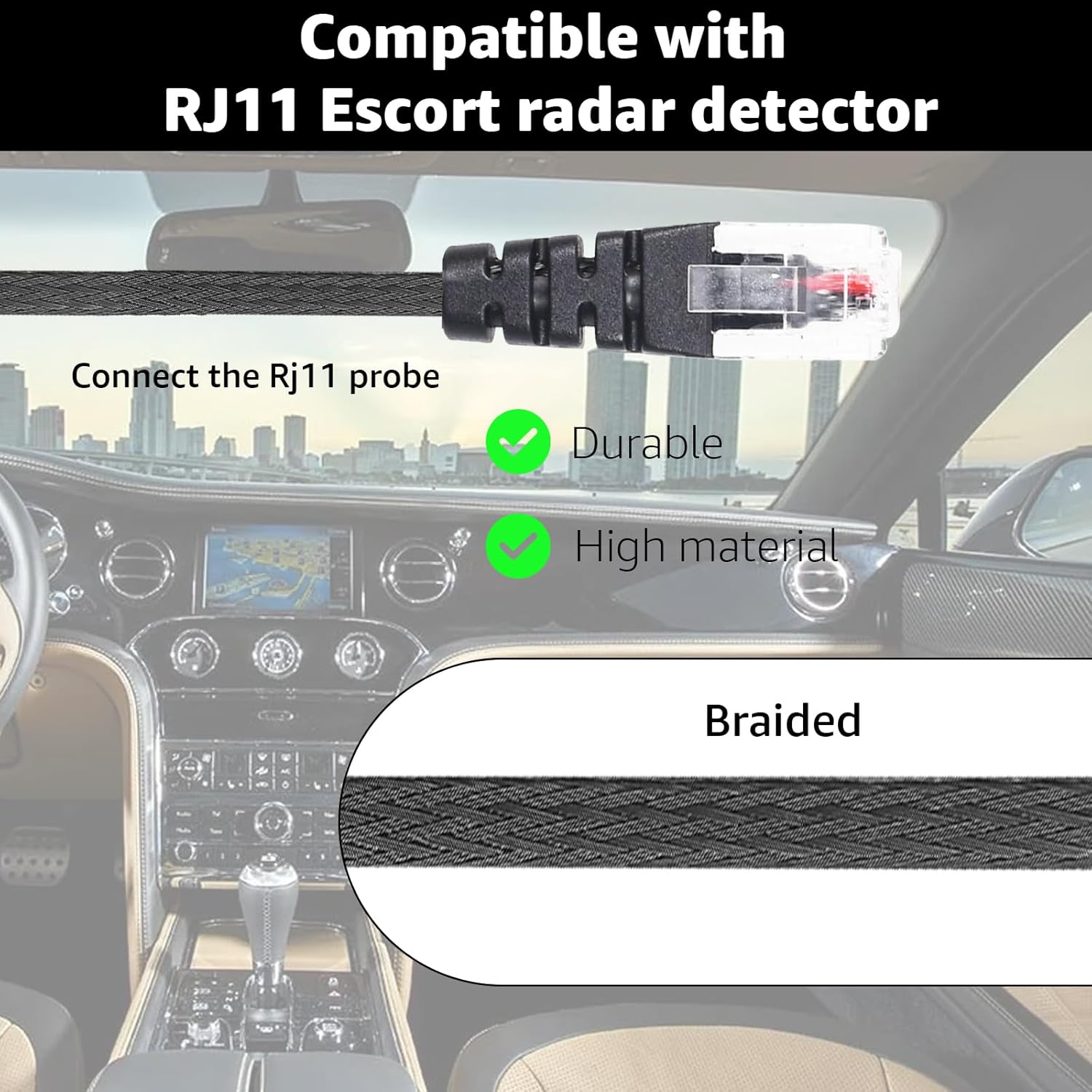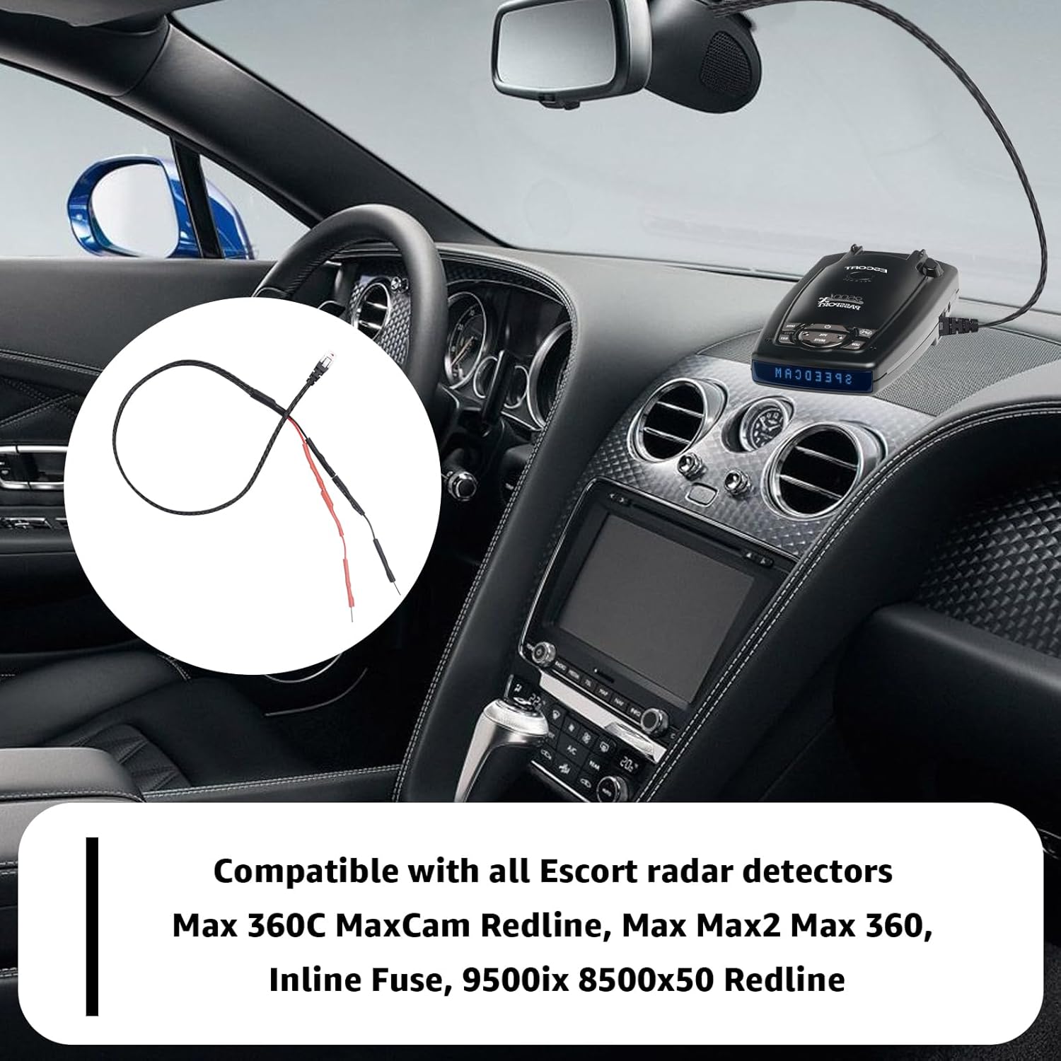 1PC RJ11 Replacement Mirror Wire Power Cord for Escort Radar Detectors,Fits Max 360C MaxCam Redline,Max Max2 Max 360,Inline Fuse,9500ix 8500x50 Redline Models