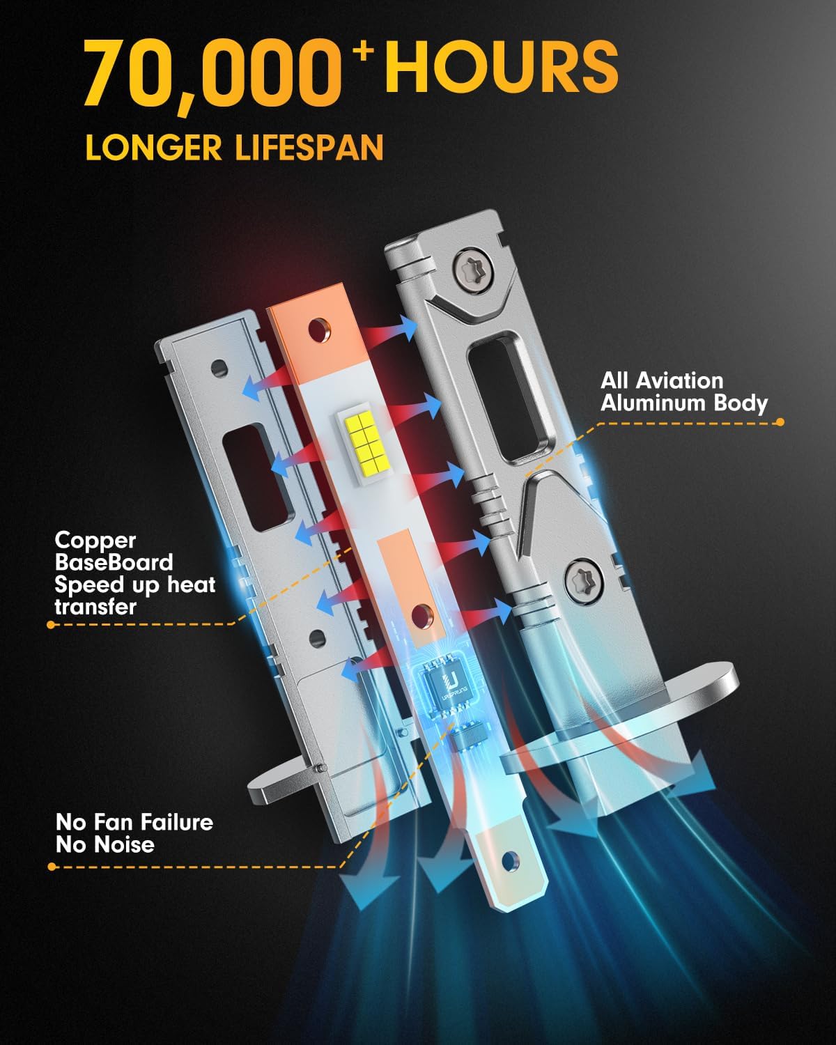 Ursprung H1 Fog Light Bulbs, 26000LM 700% Super-Brighter, 6500K Truly Plug and Play with Cooling Fan, 1:1 Mini Size No Adapter Required, Easy to Install, Pack of 2