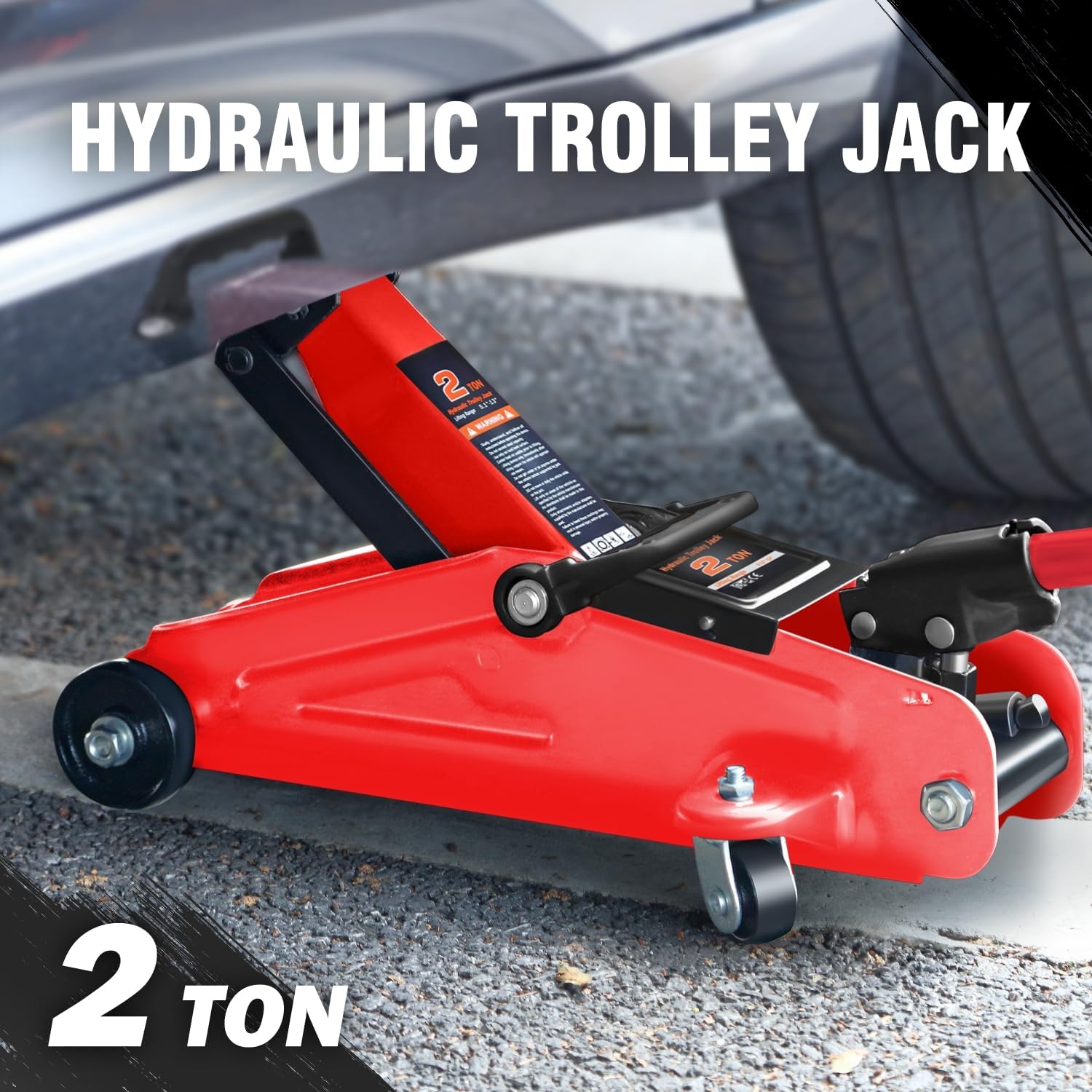 DNA MOTORING Floor Jack 2 Ton (4000 lbs) Capacity, Fast Lift Low Profile Hydraulic Trolley Jack, Steel Heavy-Duty Service Car Jack, Lifting Range 5.1"-13", Red, TOOLS-00234-RD
