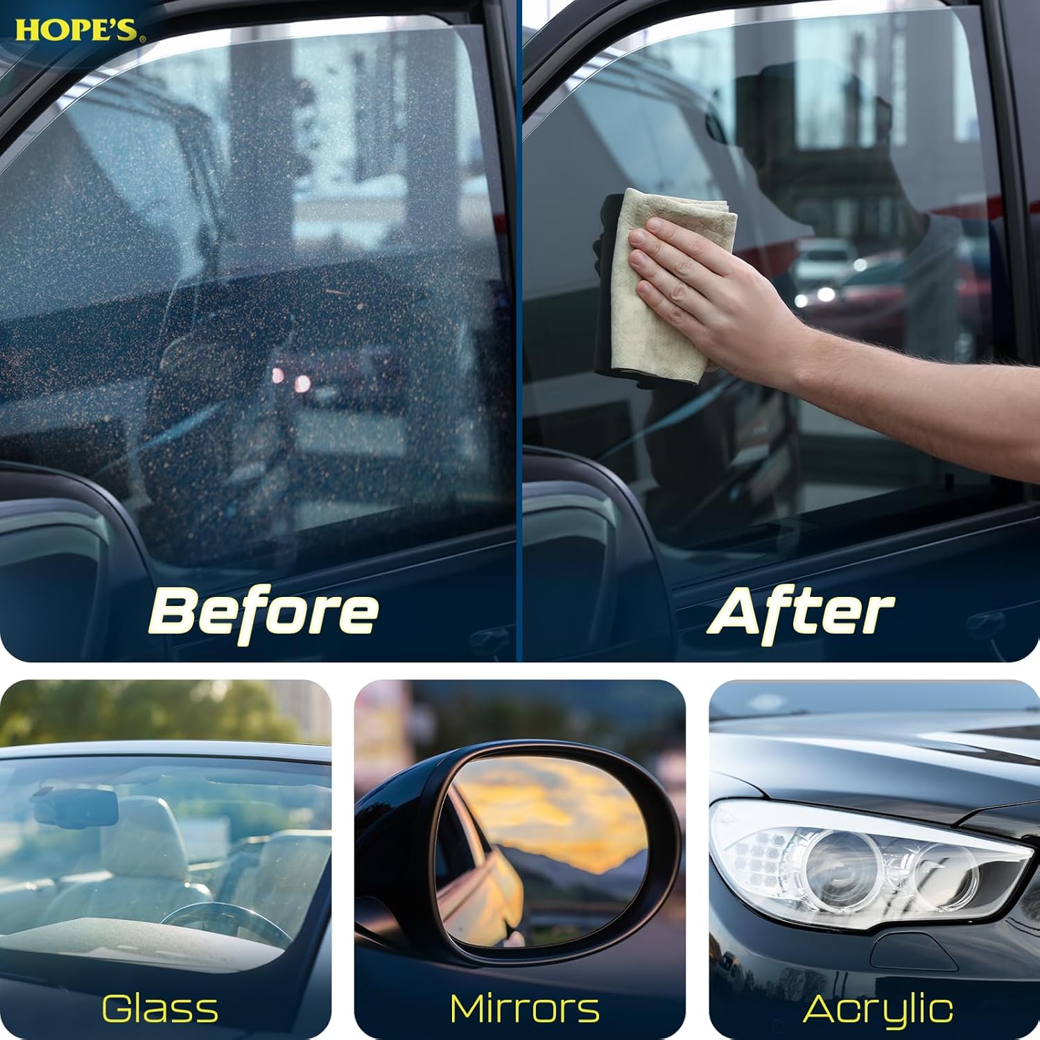 - Multi-Surface: Tackle smudges, road grime, and smoke film on your car windows, mirrors, clear acrylic surfaces, and windshield with this auto spray cleaner; give them a brilliant shine with each wipe
