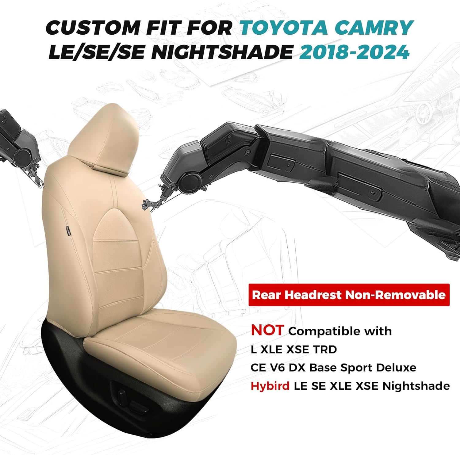 for Toyota Camry Seat Covers LE SE SE Nightshade 2018 2019 2020 2021 2022 2023 2024 - Waterproof Luxury Leather Seat Covers for Cars, Custom Fit Car Seat Covers Full Set, Beige Not for Hybrid