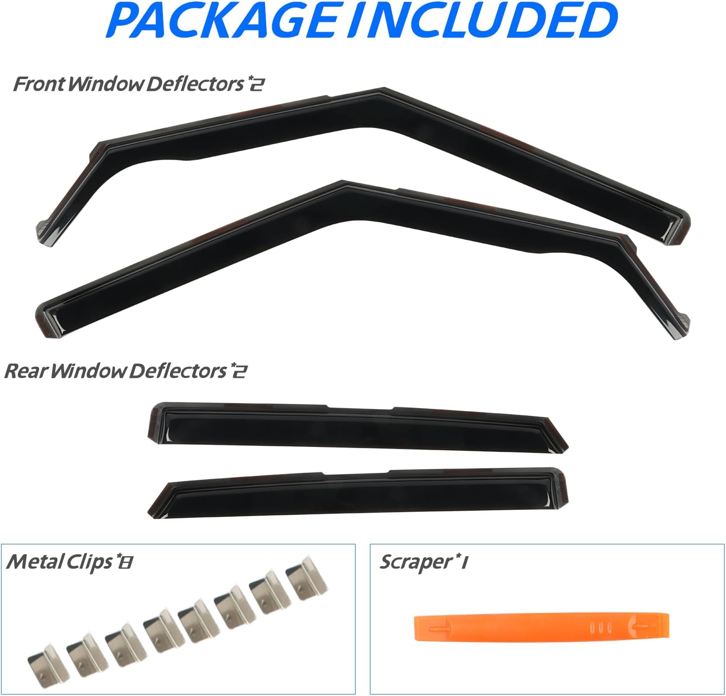 - 【In Channel Design】 CHYKORLA Window vent visors install in the window channel, provides perfect fit and sleek look for your car. No complicated instructions are needed. Attention: Please apply the clip to fix the rain guards