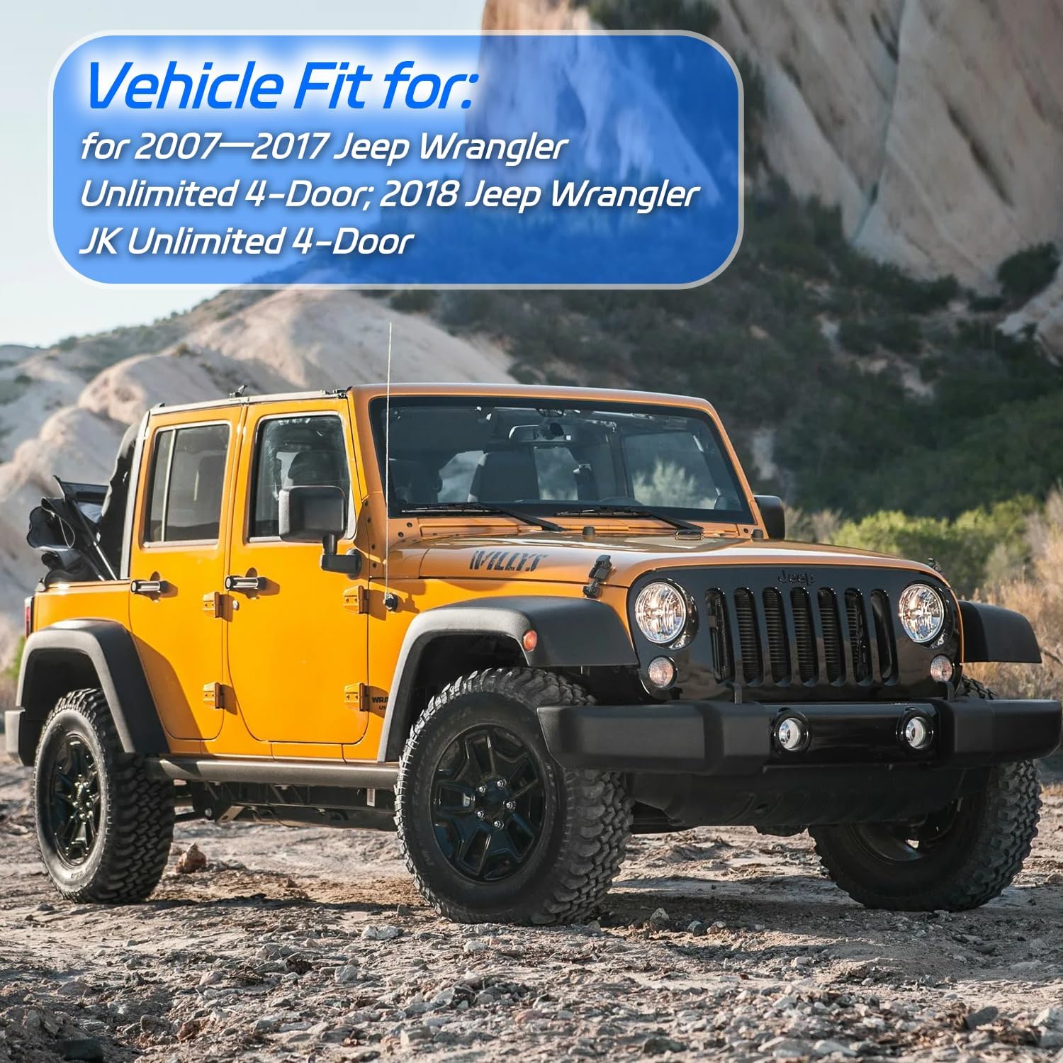 - Material Acrylic : Vehicle Service Type fit for 2007-2017 Jeep Wrangler Unlimited 4-Door; 2018 Jeep Wrangler JK Unlimited 4-Door fit for 2007-2017 Jeep Wrangler Unlimited 4-Door; 2018 Jeep Wrangler JK Unlimited 4-Door See more