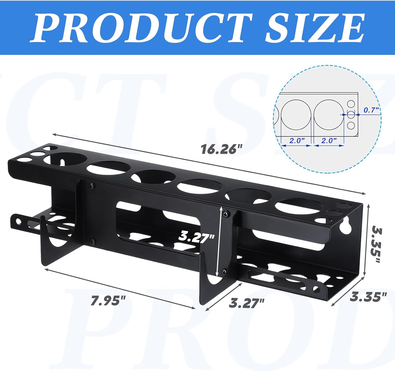 - Easy Installation: this holder features an easy to install design; The screw fitting included in the package simplifies assembly, making it a breeze even for first timers; Its design allows it to be conveniently mounted, making it doesn't take up too much of your valuable workspace; It can be mounted on a tool shed, cart or wall; You just connect horizontally base to the rack; Predrilled mounting holes and hardware included for a quick and easy installation