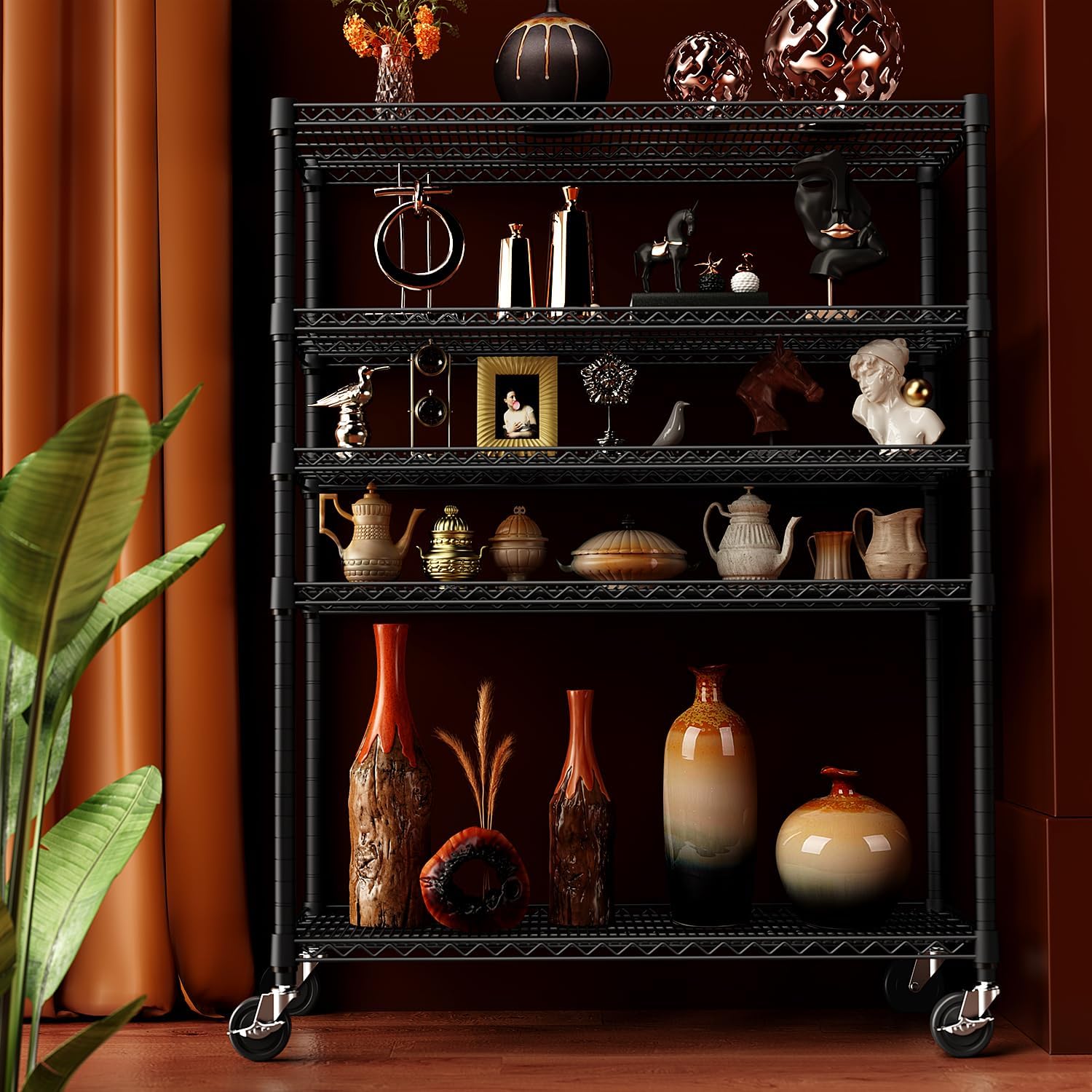 - COMMERCIAL GRADE HEAVY DUTY: Craft from study high-quality carbon steel and 25.4mm metal rods, each shelving unit has a maximum capacity of 660LBs on leveling feet, with a total capacity of 2640 LBs (Approximately 530 LBs on wheels.)