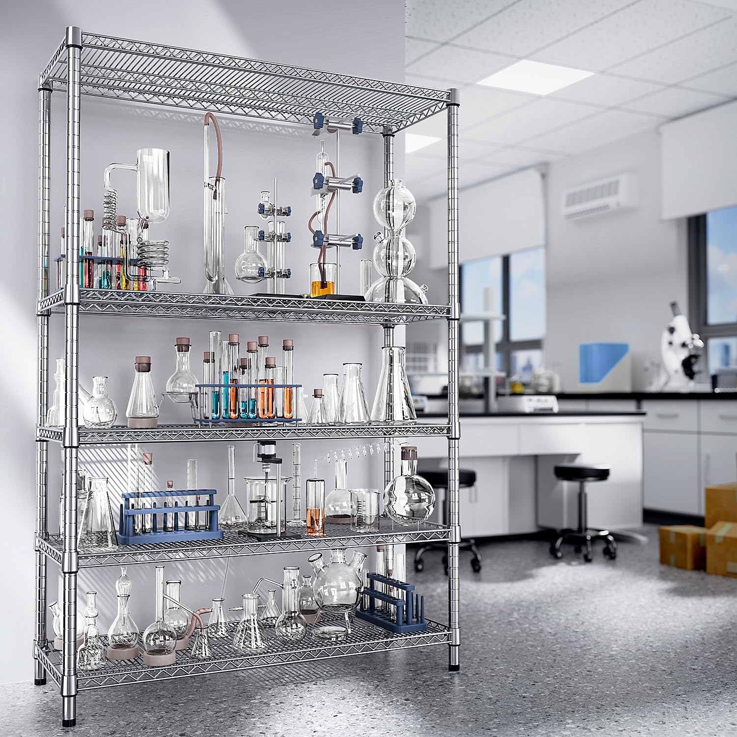 IZEUK 4250 LBS Garage Shelving Wide Storage Shelves 5 Tier Metal Shelves Heavy Duty Adjustable Utility Shelf Rack Chrome 17.7" D x 47.2" W x 70.4" H