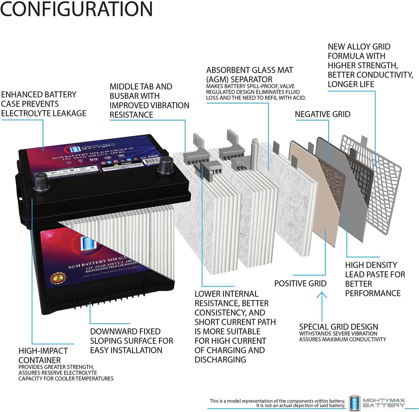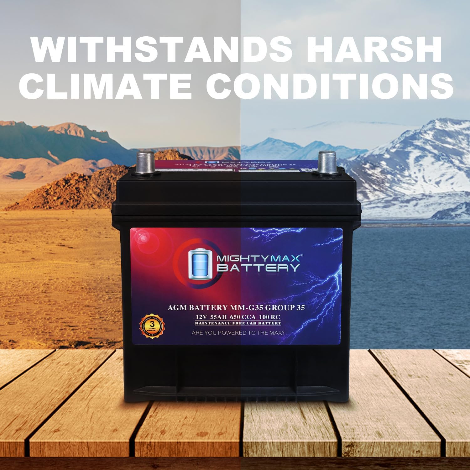 Mighty Max Battery MM-G35 Start and Stop Car BCI Group Size 35 12V 55Ah, 100RC, 650 CCA Rechargeable AGM Car Battery