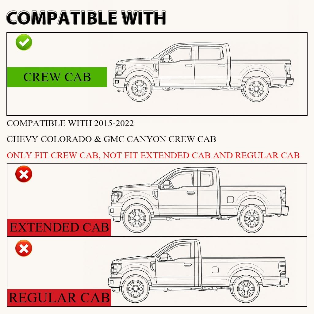 - COMPATIBILITY: Compatible with Chevy Colorado Crew Cab 2015-2022 Compatible with GMC Canyon Crew Cab 2015-2022