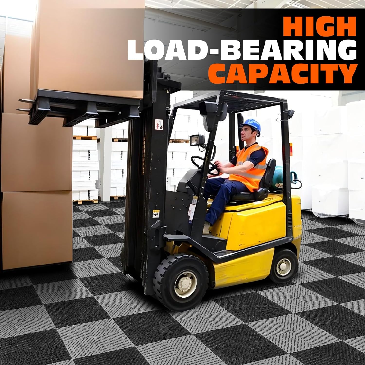 - Durable Construction: These interlocking garage tiles feature a high bearing capacity to withstand heavy loads and equipment.