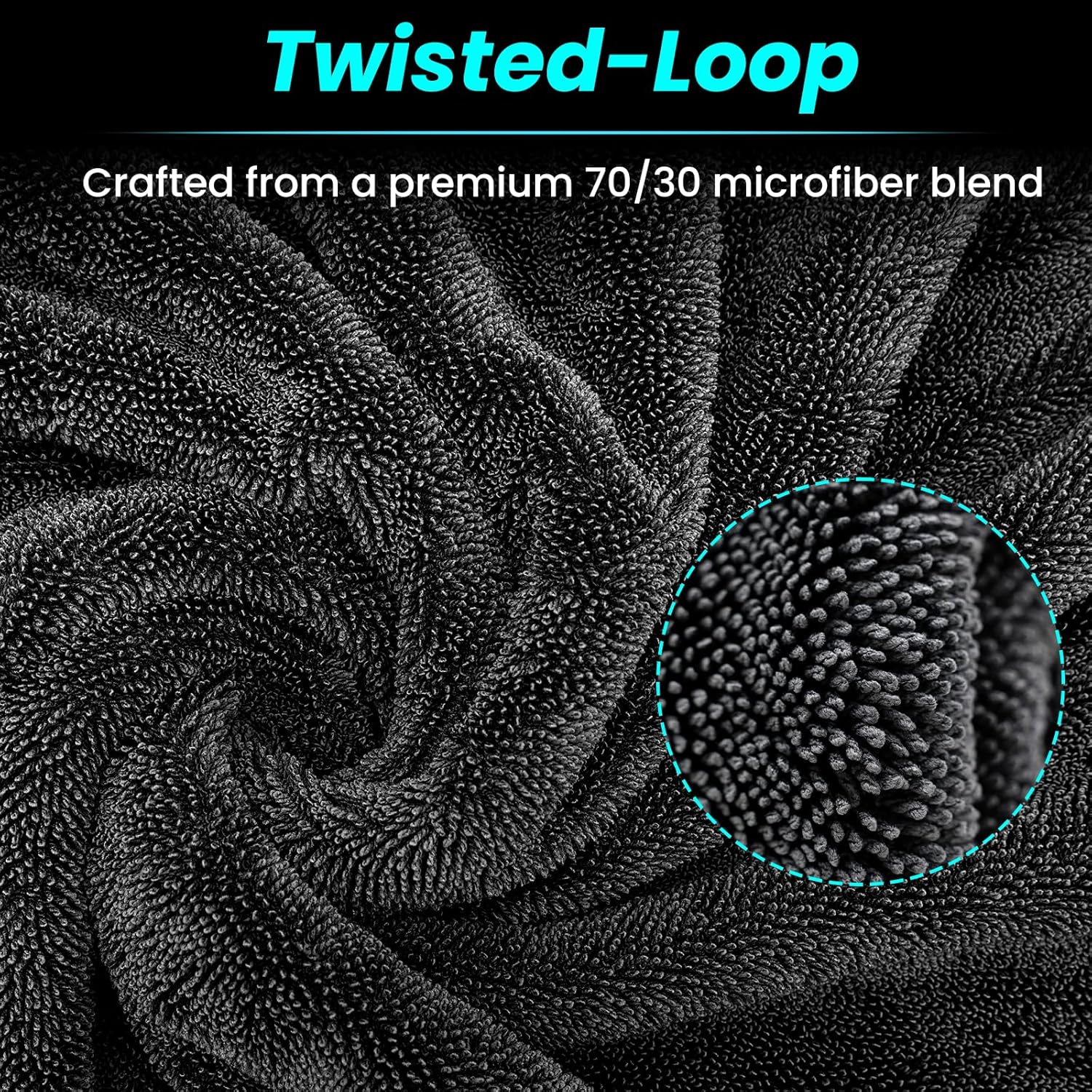- Ultra absorbent:This car wash towel with Twisted-Loop Technology,thickness 1300 GSM,effortlessly soaking up water without unsightly streaks or water spots,It's like magic,you can dry an entire car in one pass,reduces drying time by more than half