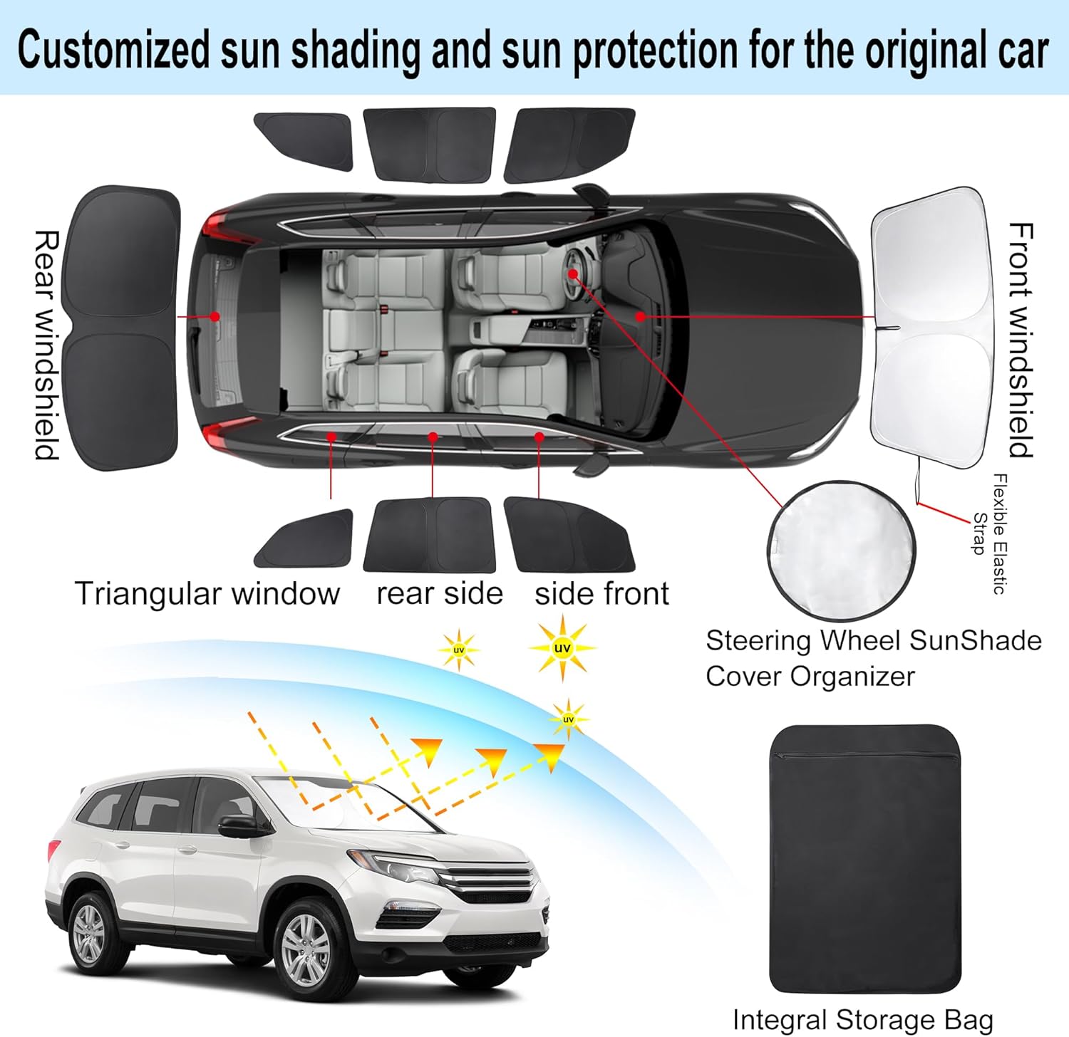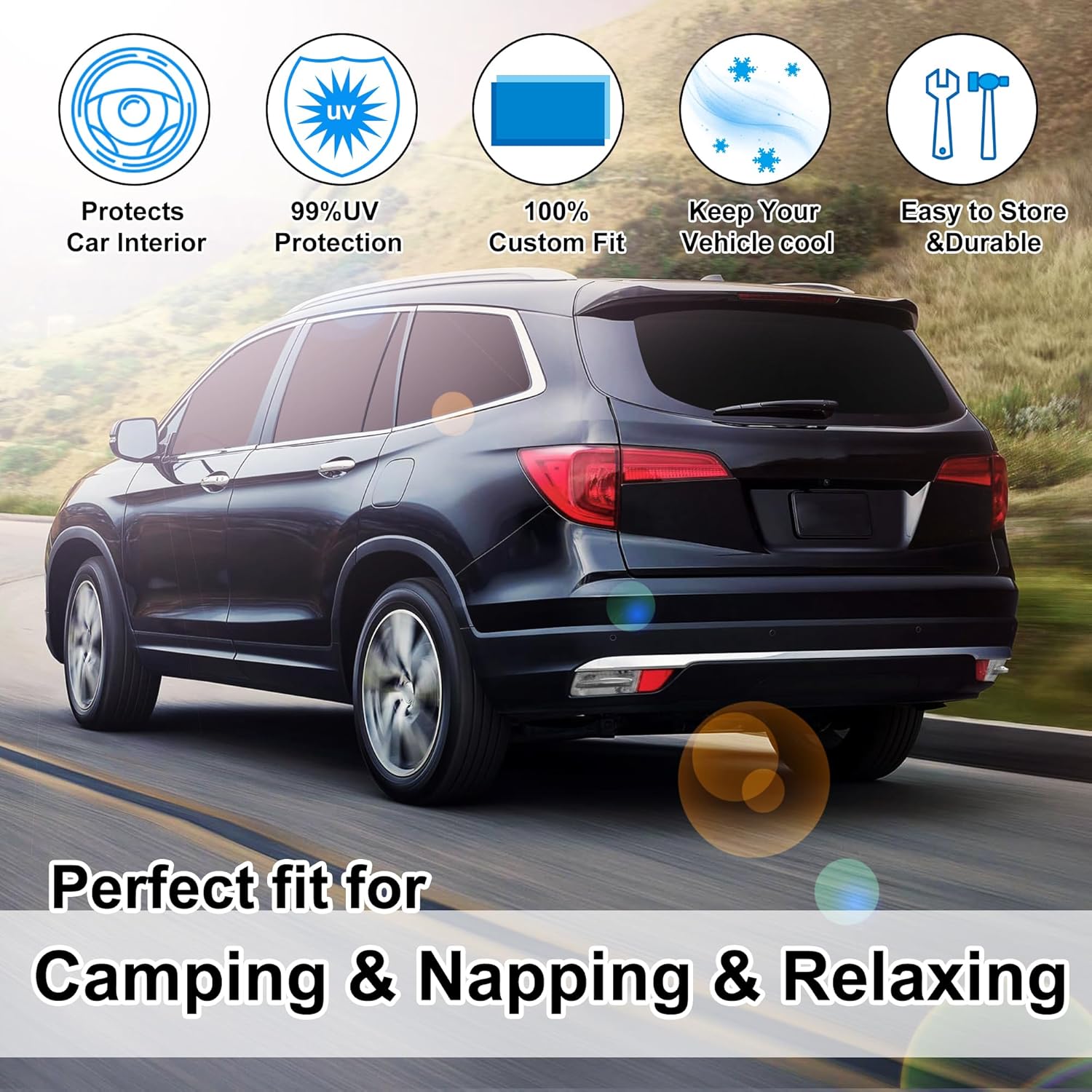 - Customized Design:The sun shade custom fit for Honda Pilot 2016-2024 2025 EX-L Special Edition Elite Black Edition Touring.Our window shade is according to the car size design,perfectly fit your car and does not need to trim.windshield sun shade solve the problem of light leakage and incompatibility of the old umbrellas.The sunshade designed for Honda Pilot 2016-2025 EX-L Special Edition Elite Black Edition Touring.