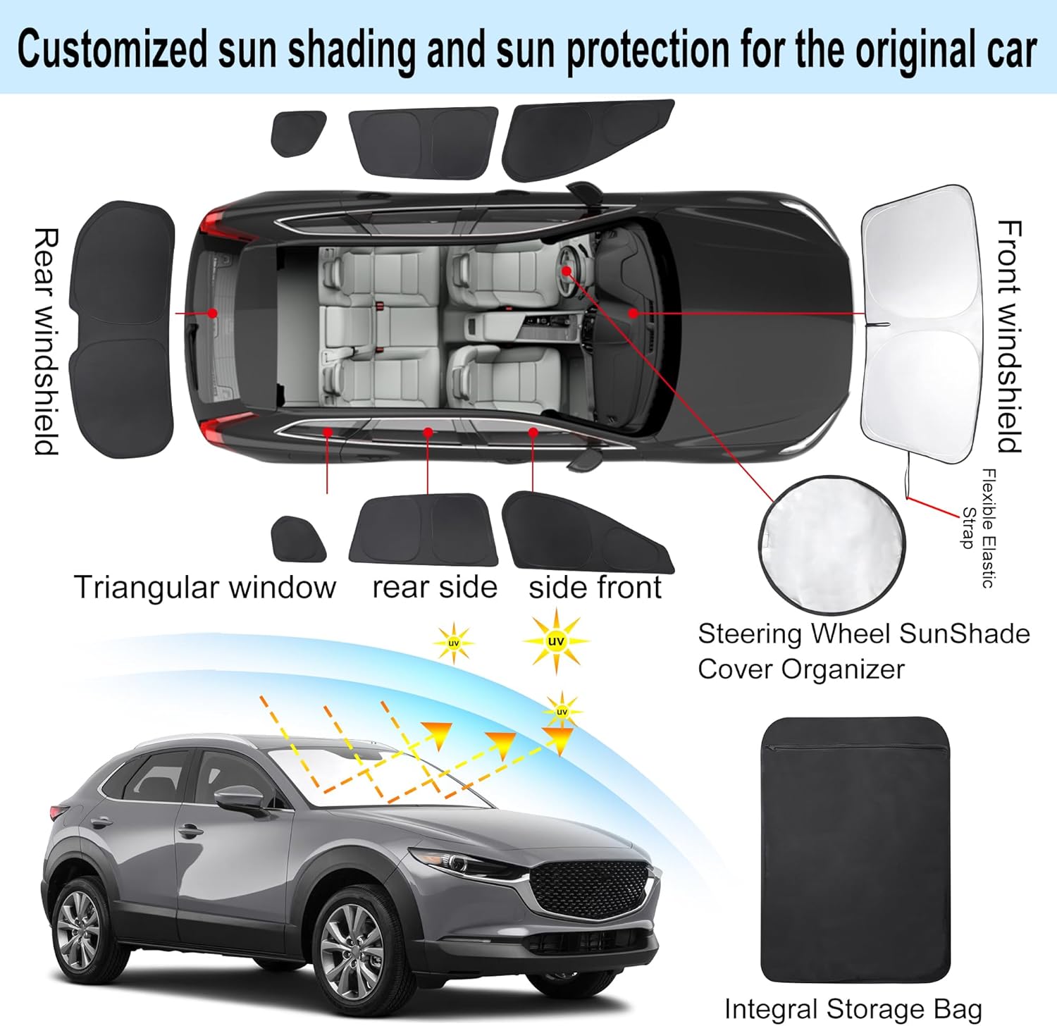 TINGLU Window Shades for Mazda CX-30 2019-2024 2025 Accessories Car Side Full Windows Rear Triangular Windshield Sun Shade Sun UV Rays & Privacy Protection for Camping,Napping,and Relaxing 8PCS
