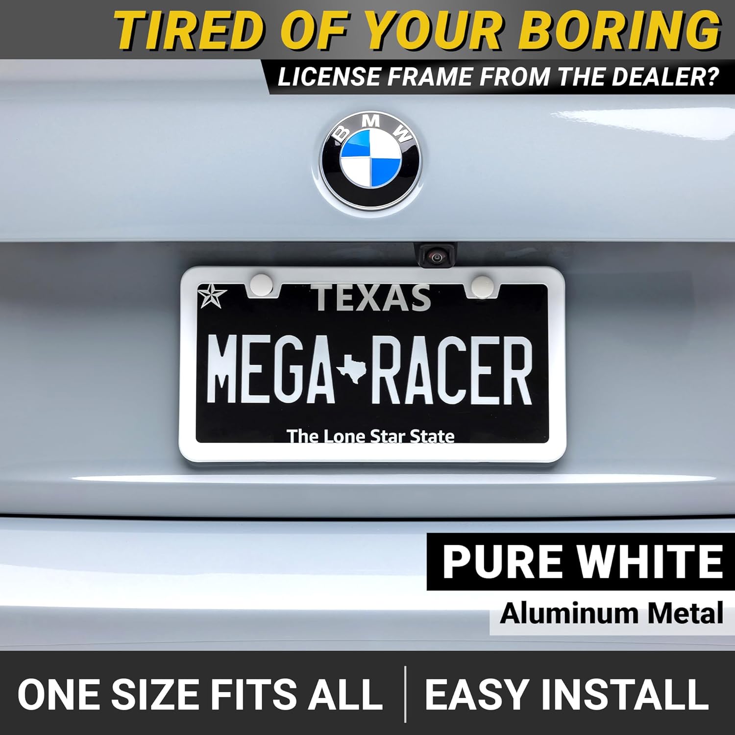 - CUSTOMER SERVICE: Mega Racer's 2 pc White License Plate Frame automotive accessories will leave both you and your ride satisfied. If you have any questions please send us a message via Amazon Message and we will be sure to respond within 24 hours.