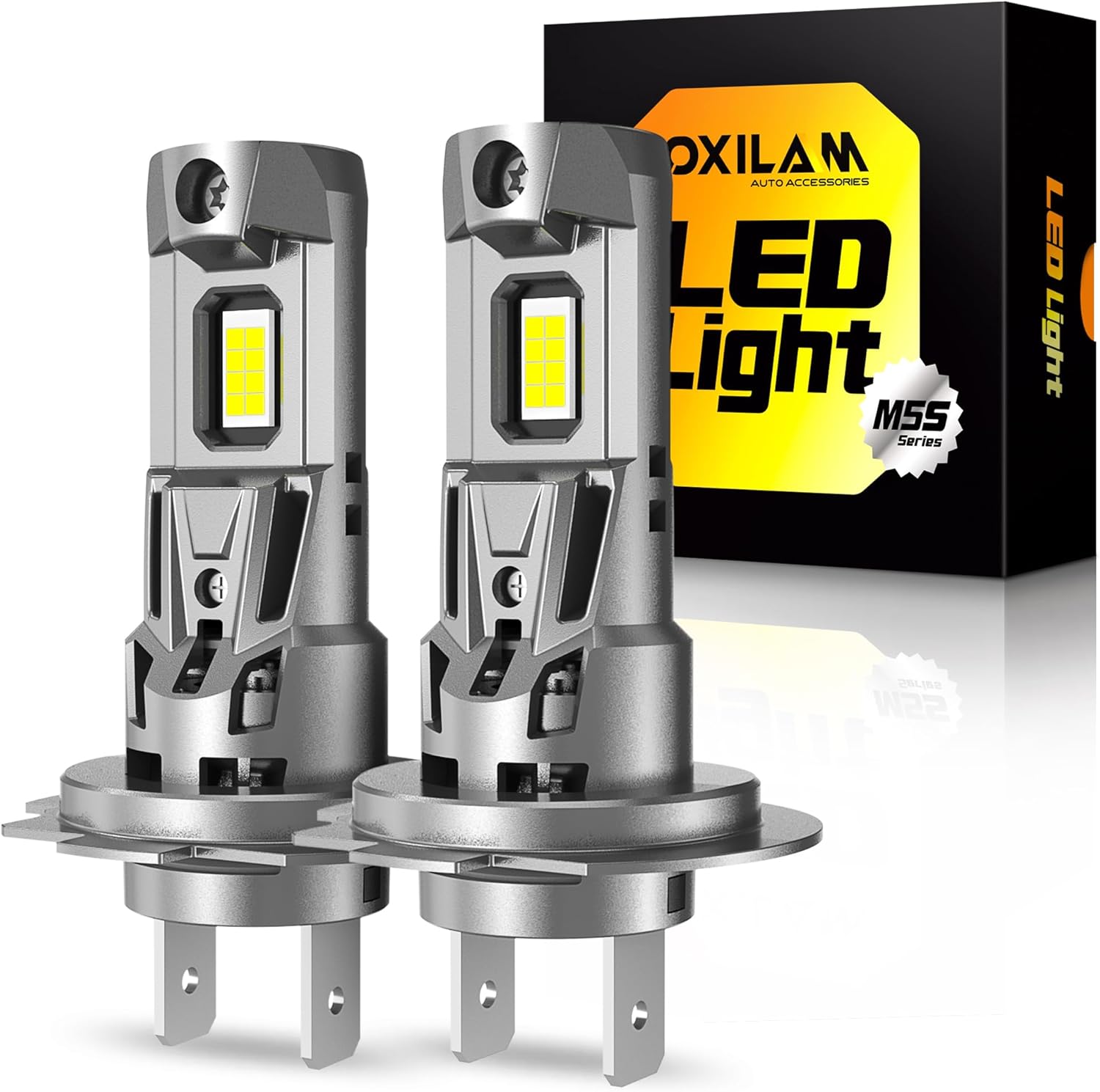 - Perfect Beam Pattern: The 1:1 filament design mimics the original halogen bulb, ensuring a precise beam pattern without scattering light. The ultra-thin chip spacing design (0.039 inches) ensures even light distribution, eliminating dark spots and uneven focus. OXILAM H7 LED bulb provides a wide and sharp light cut-off line, reducing glare for oncoming drivers while maintaining excellent road visibility