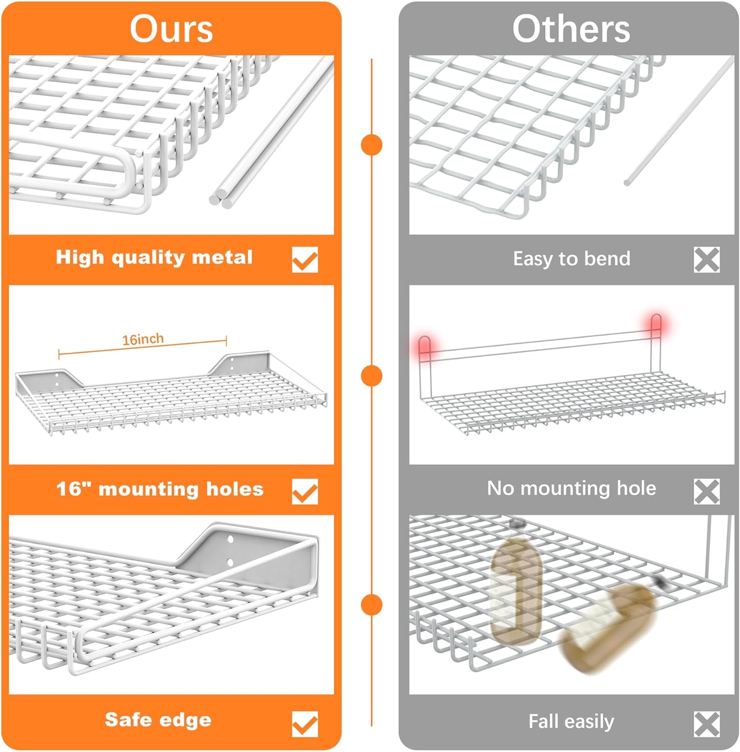 - Safety First: Designed with smooth, rounded edges to prevent injury and ensure secure storage. Items stay in place without the risk of slipping off, making it a safer choice for your garage, closet, or laundry room