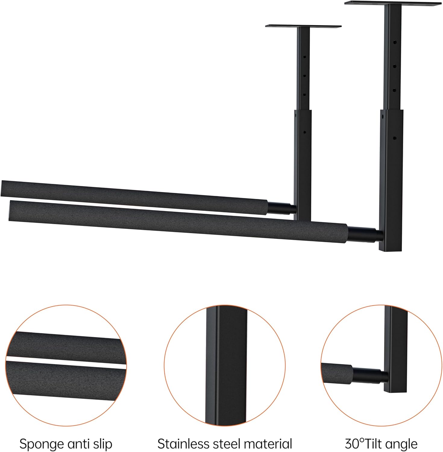 Adjustable Ladder Ceiling Rack, Kayak Overhead Garage Storage Rack, Garage Ceiling Storage for Kayak, Ladder, Surfboard, Snowboar Overhead Hanger, Holds 150 lbs, Black