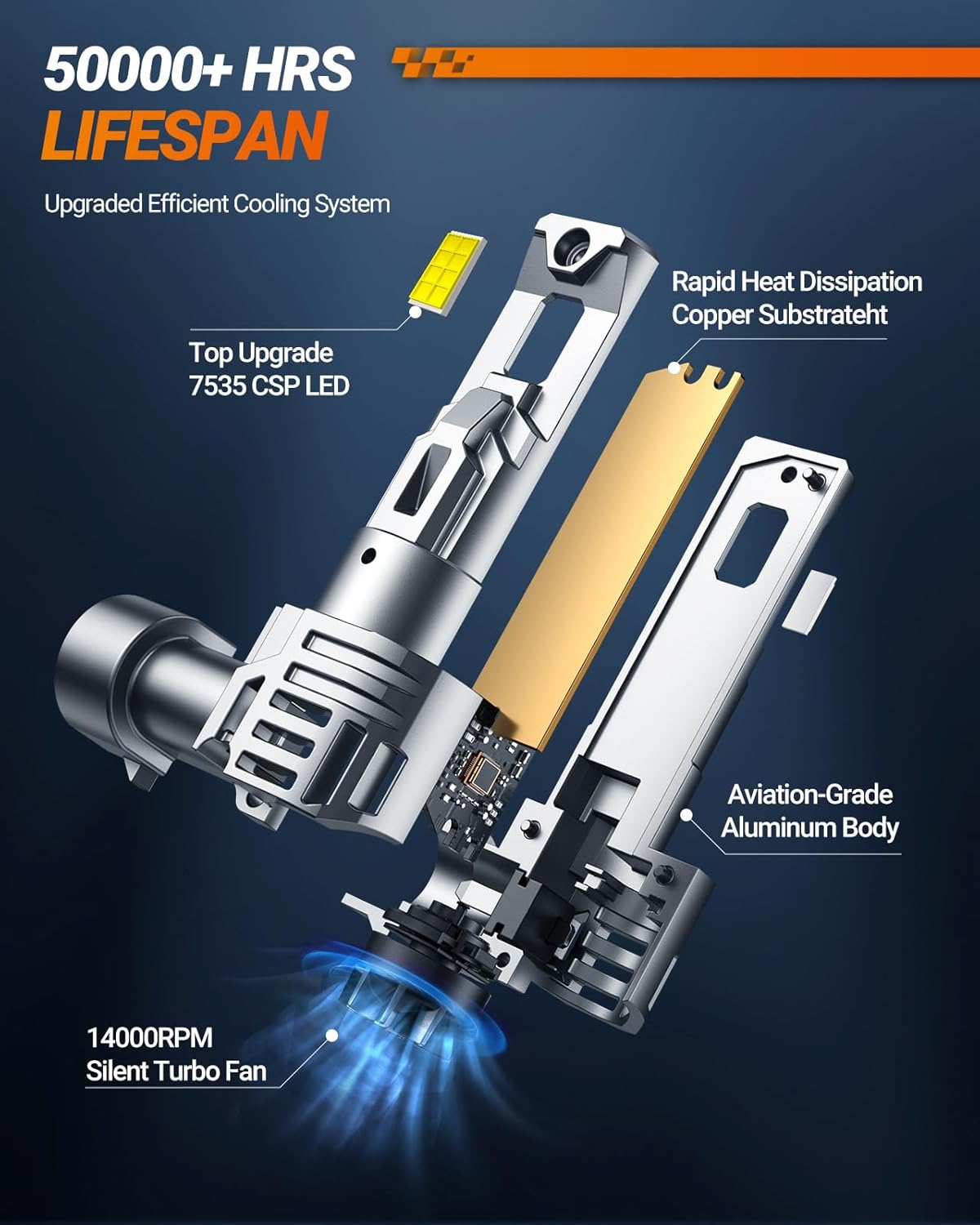 - 【60000+ Hours Lifespan】Equipped with a 13000RPM high-speed cooling fan, the 9012 Fog Bulbs offer exceptional heat dissipation, providing over 60000 hours of reliable illumination and smooth operation.In addition, IP67 waterproof technology can make it use in a variety of weather.