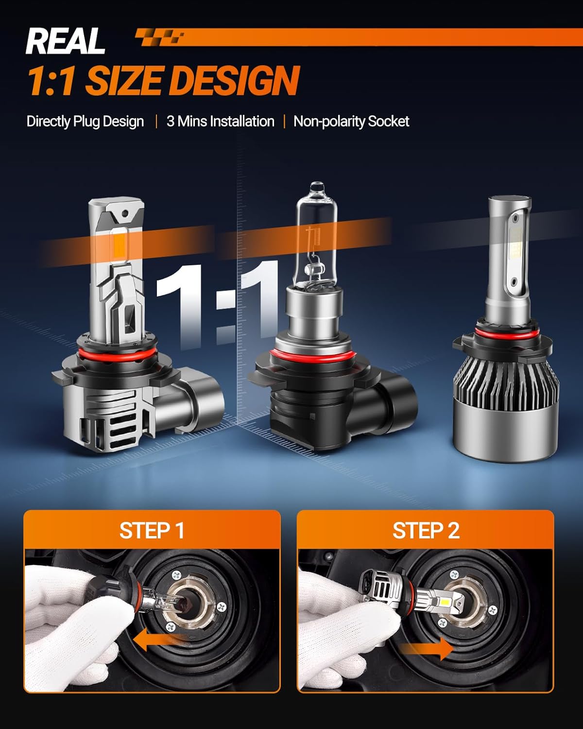 - 【800% Super Brighterness】 Boasting upgraded 16PCS CSP chips, Sealight 9012 bulbs emit up to 30000LM brightness, with a cool white 6500k. This provides superior visibility, enhancing your safety during nighttime driving