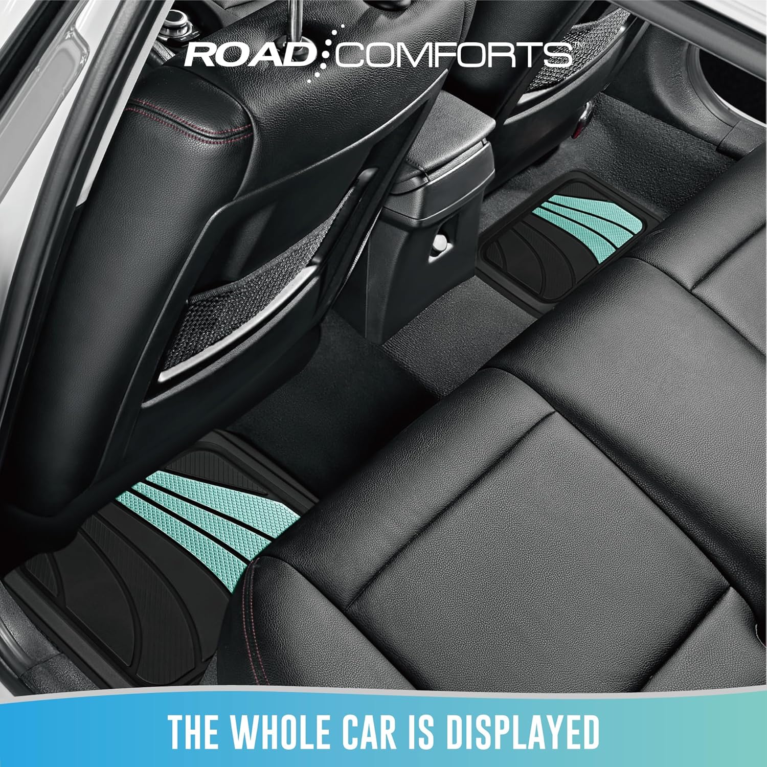 Road Comforts Car Floor Mats Full Set – Front & Rear Car Floor Mats with Aluminum Design, Anti-Slip Backing, All-Weather Protection, Trim-to-Fit Car Mats for Most Sedans, SUVs & Vans - Green