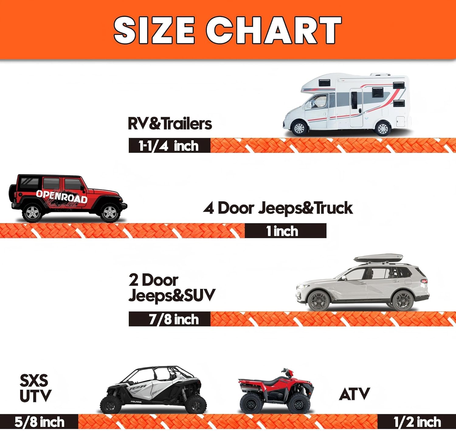 - 【Various Vehicle Adaptation】The Kinetic Recovery Tow Rope with super adaptability is generally suitable for towing and pulling various vehicles, for example Jeep,UTV, ATV and Truck. It is an ideal assistant for your travels and adventures.