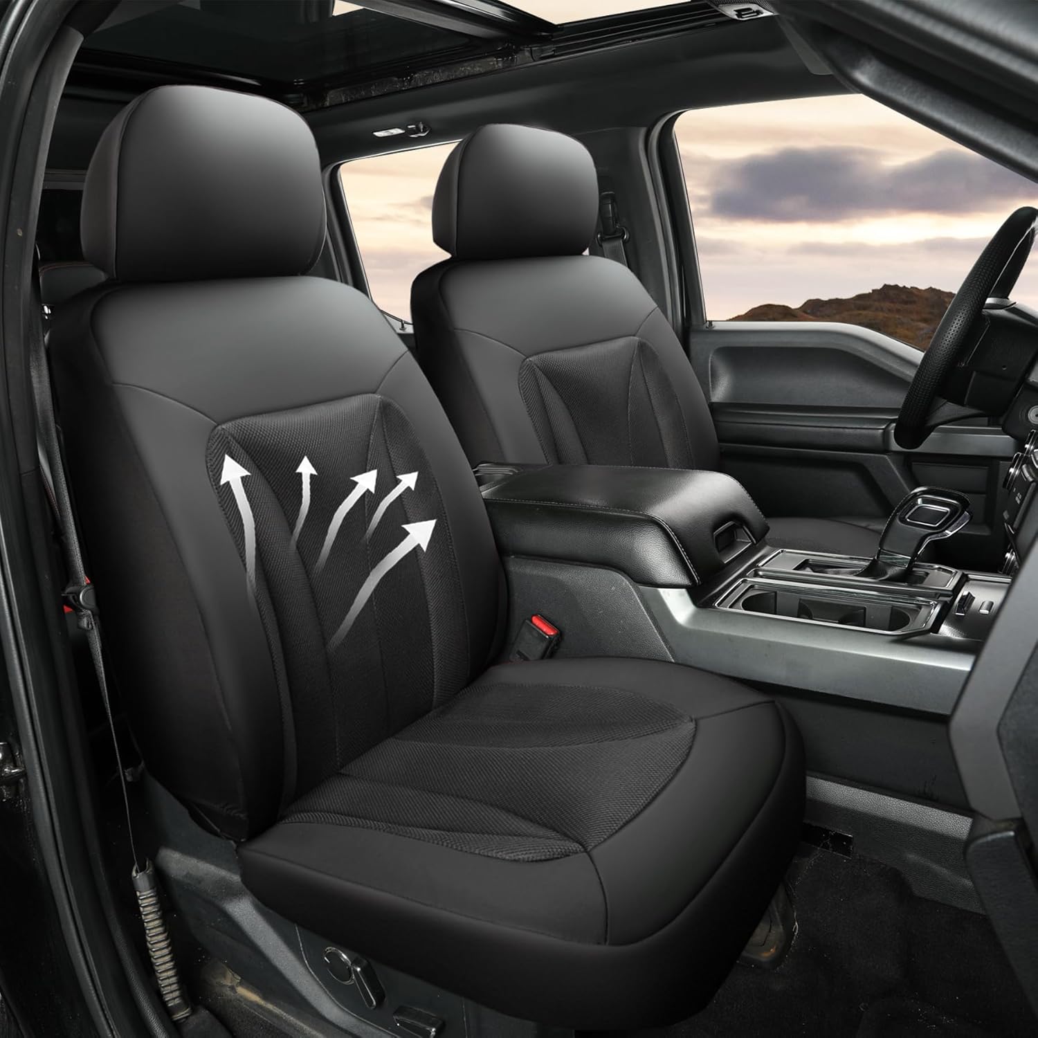- 【Compatibility】 The ventilated front seat covers are custom-fit for Ford F150 F250 F350 F450 SuperCrew / Crew Cab Pickup Trucks