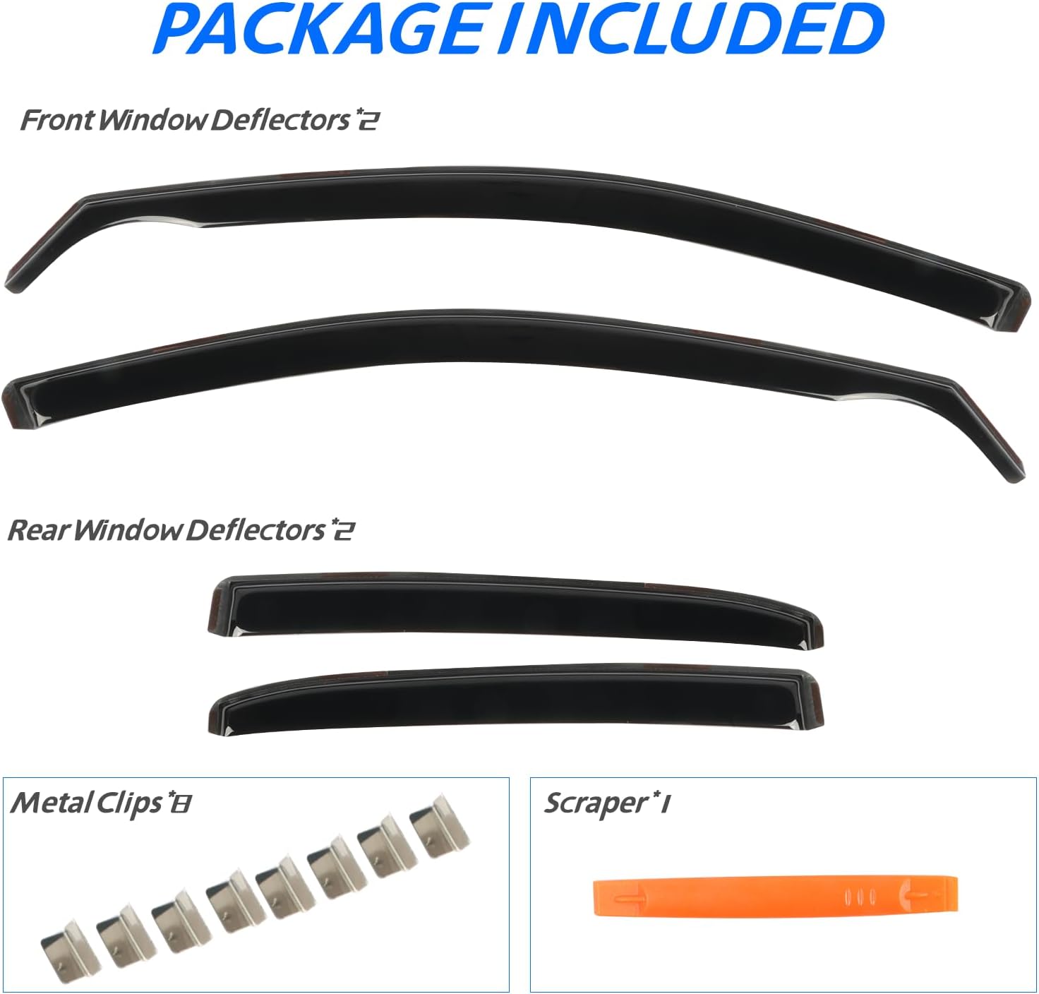 - 【In Channel Design】 CHYKORLA Window vent visors install in the window channel, provides perfect fit and sleek look for your car. No complicated instructions are needed. Attention: Please apply the clip to fix the rain guards