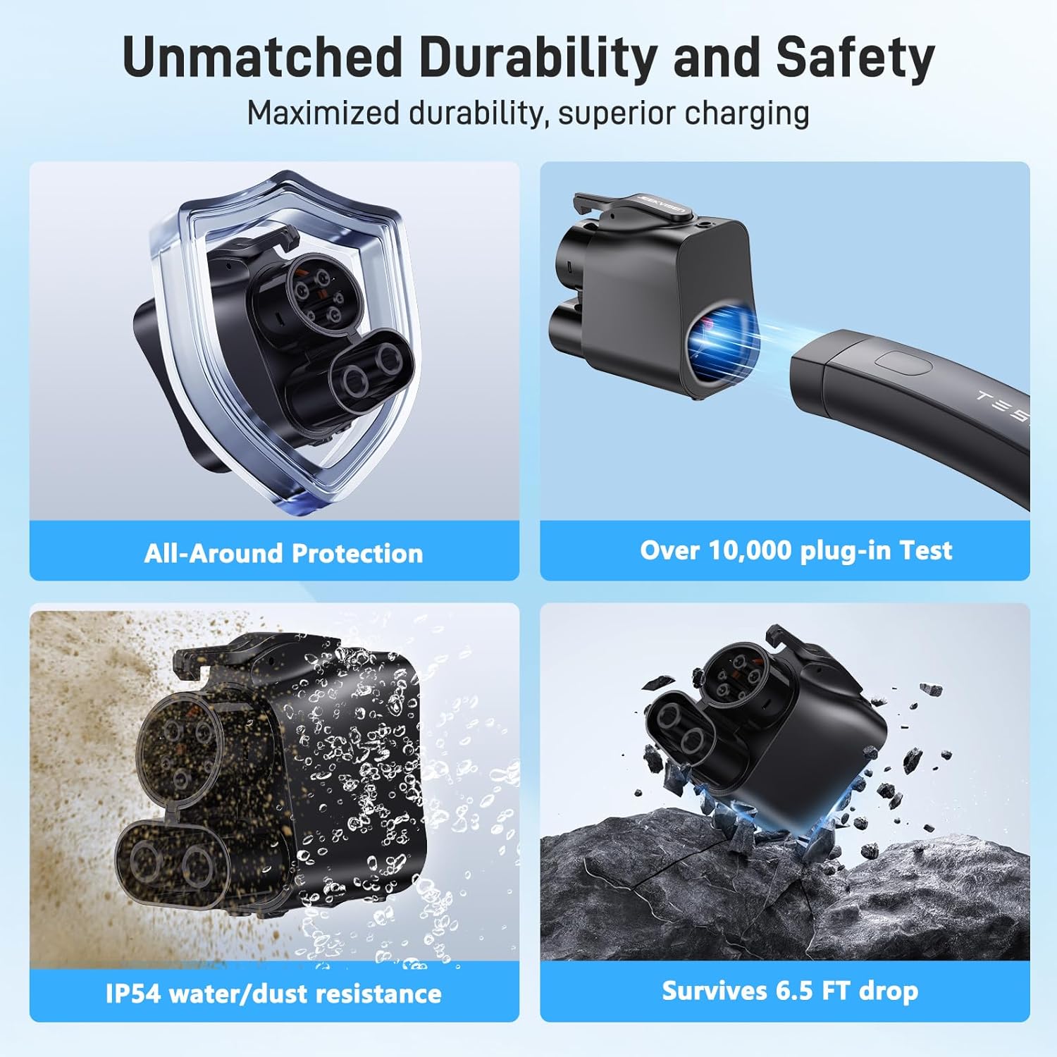 - Fast Charging Performance:Charge up to 180 miles in just 15 minutes with a maximum rating of 500A/1000V DC and 250KW. This adapter supports Tesla’s Supercharger rates for fast, efficient charging to keep you moving