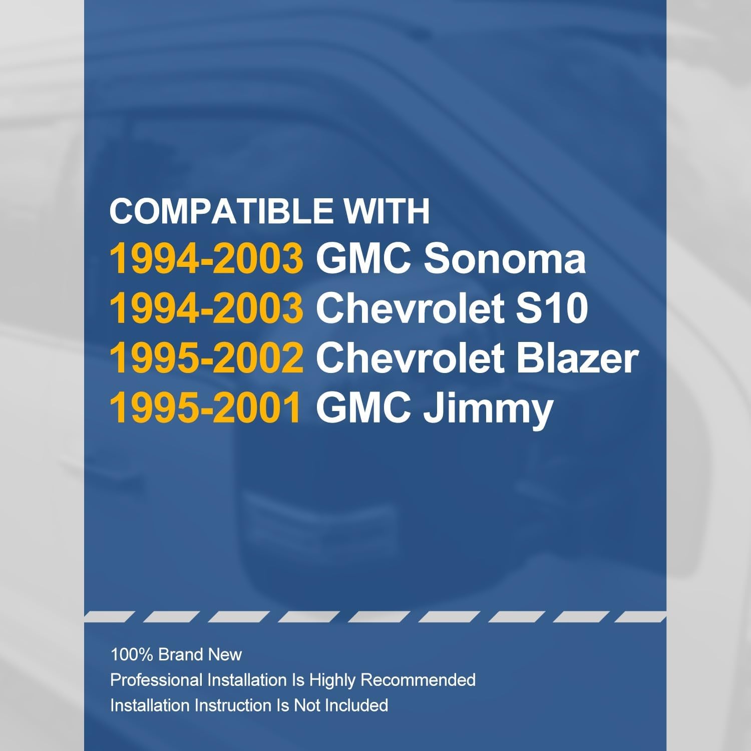 - Vehicle Compatibility - Window Visors Compatible with 1994-2003 GMC Sonoma, 1994-2003 Chevrolet S10, 1995-2002 Chevrolet Blazer, 1995-2001 GMC Jimmy