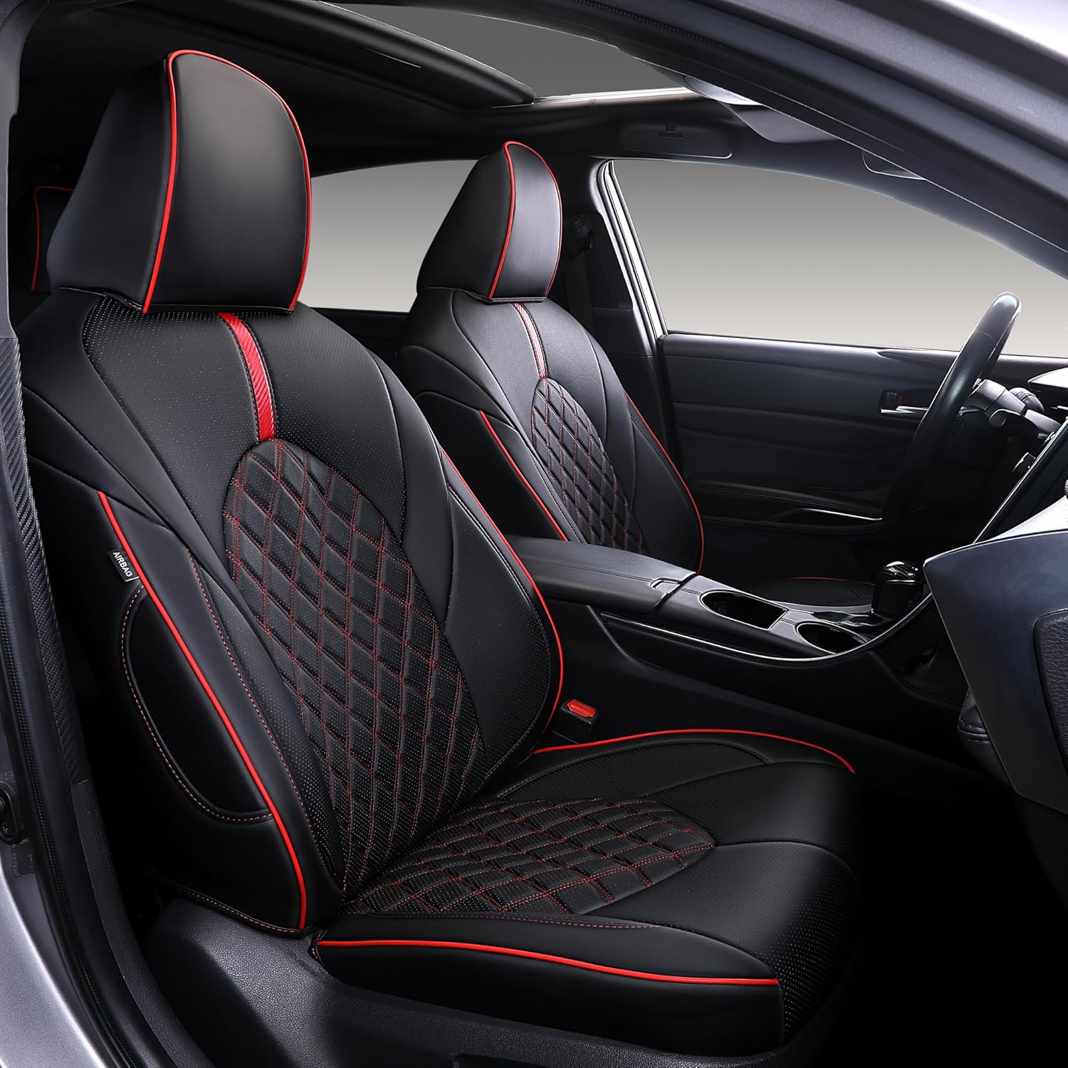 Custom Fit Camry Seat Covers for Toyota Camry LE,SE,SE Nightshade 2018-2024 Full Coverage Waterproof Breathable Leather Car Seat Covers Full Set(Black with Red Trim)