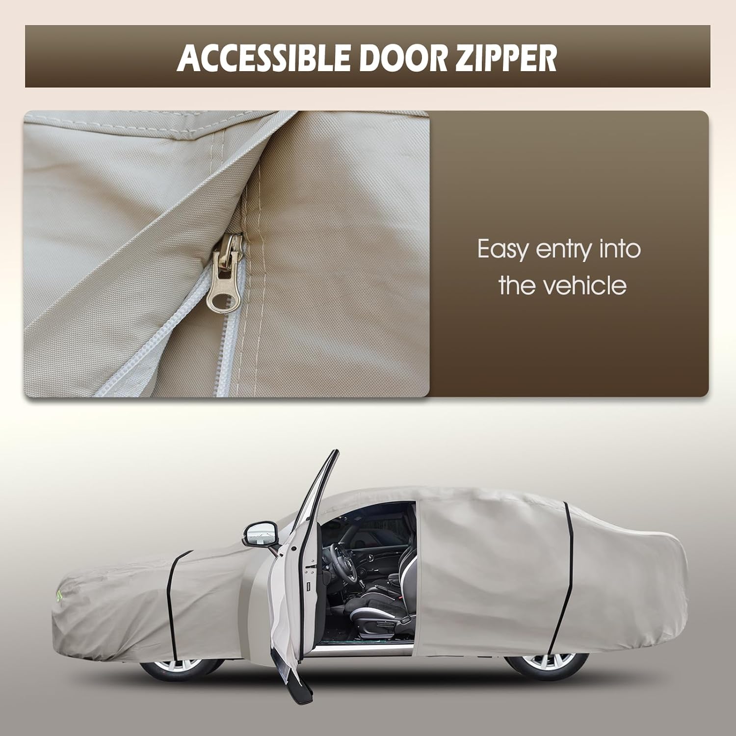 - Safety and Convenience Design: 1)The driver's position of the Migaven full exterior covers has a zipper, which allows you to enter the car at any time to retrieve items without removing the cover. 2) Equipped with six reflective stripes, the full-coverage reflective stripes remind others at night to ensure parking safety. 3) The cover is equipped with a mirror pocket to protect your mirrors perfectly and avoid damage. 4) It comes with a storage bag for easy placement.