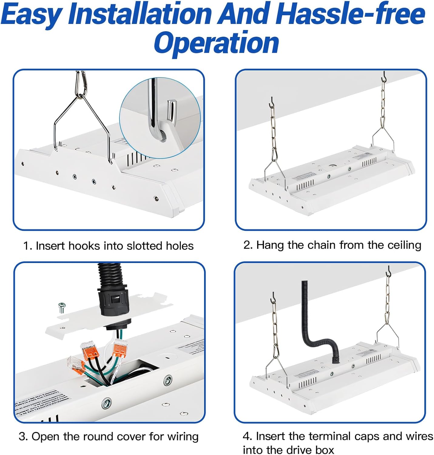 - 【Anti Glare】This LED linear high bay light is just perfect for garages and workshops! It comes with a frosted lens that offers soft, anti - glare light. And it's compatible with a 0 - 10V dimmer for easy output control. With great quality and controllability, it's an ideal choice for lighting in warehouses and workshops.