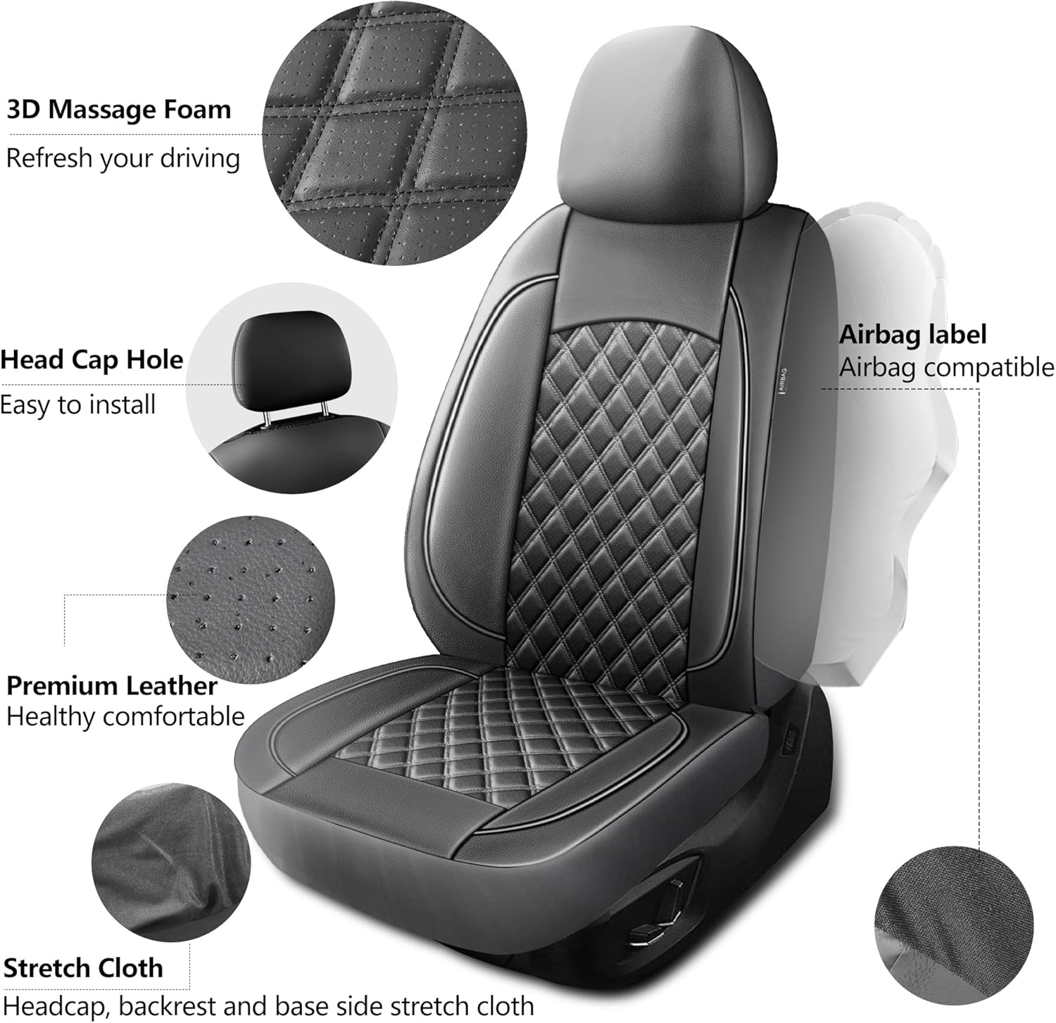 Leather Car Seat Covers,Breathable and Waterproof Napa Leather Automotive Seat Cover,Universal Interior for Cars,Sedans,SUVs,Vans,Trucks(2 Pieces,Front Seat,Grey,N3)