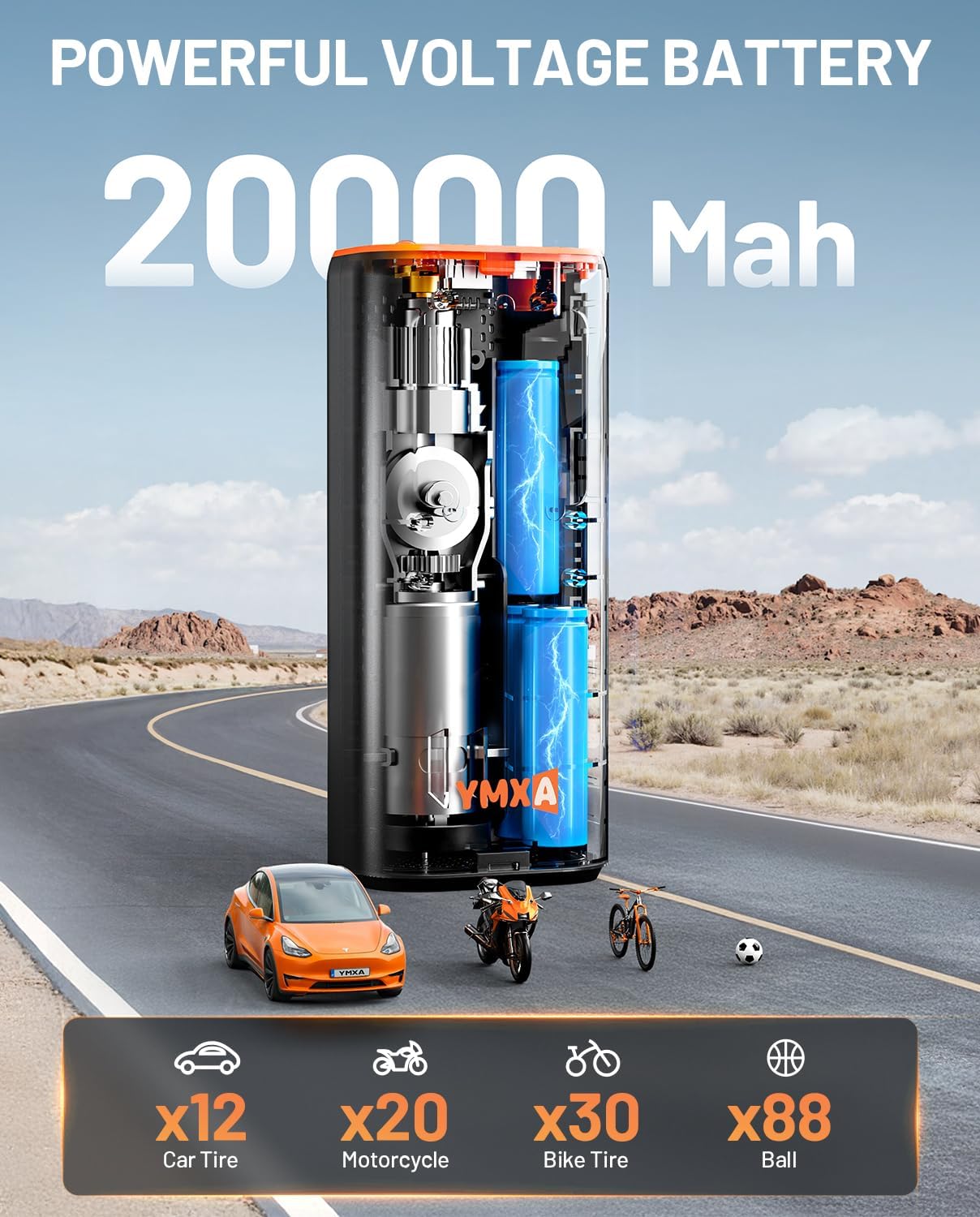 - 【Large Capacity Battery】This air compressor for car—a portable air compressor for car tires and portable tire inflator—boasts a 20000mAh high-multiplier battery and 10‑ft DC 12V cord for direct power when low, delivering 50% more performance vs. standard models.