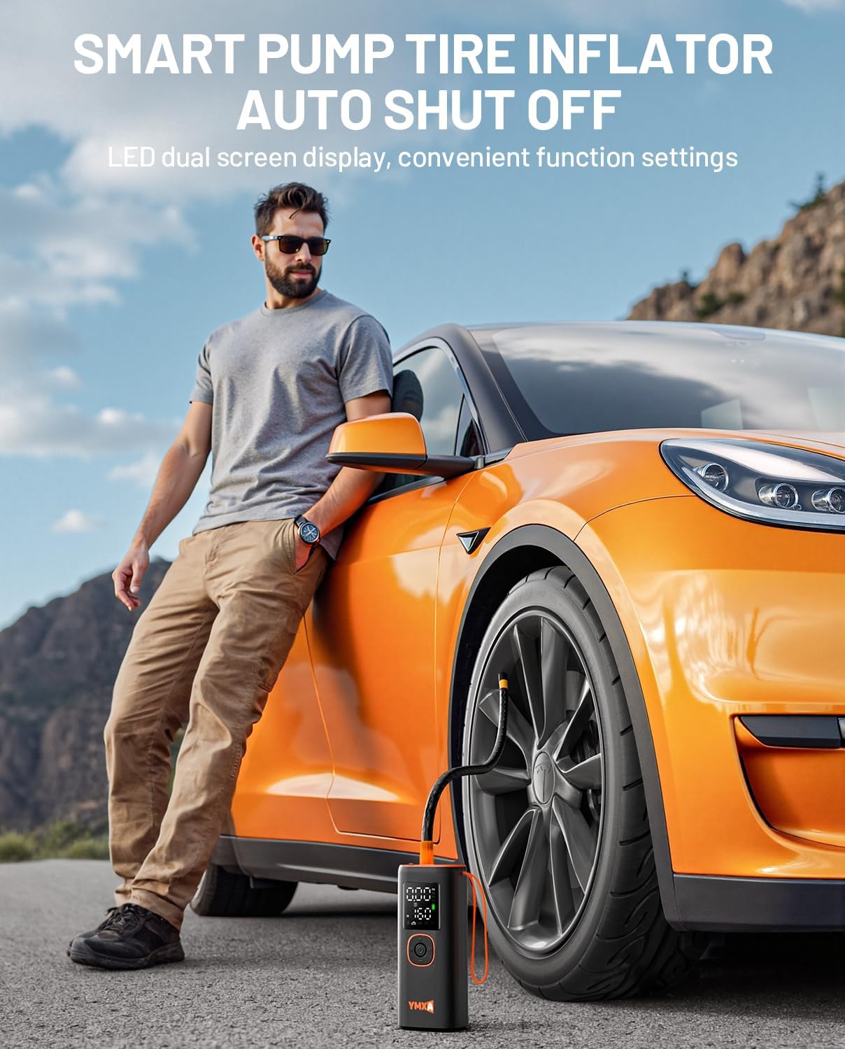 - 【Auto Shut-Off】This portable air pump for car tires uses a 2025 upgraded smart chip to auto shut off at preset pressure. Car air pump offers 3 emergency night light modes and built-in fan overheat protection. A reliable car air compressor, portable air compressor.