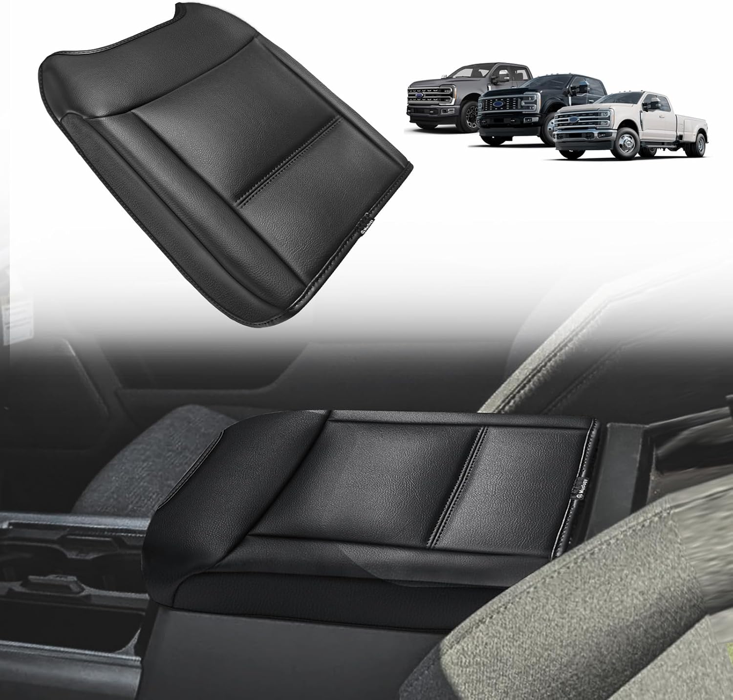Muslogy Center Console Armrest Cover Compatible with Ford F250 F350 F450 2023 2024 2025 Super Duty Comfort Armrest Pad Arm Rest Cushion Vegan Leather Protector Regular Thick(Bucket Seat ONLY)