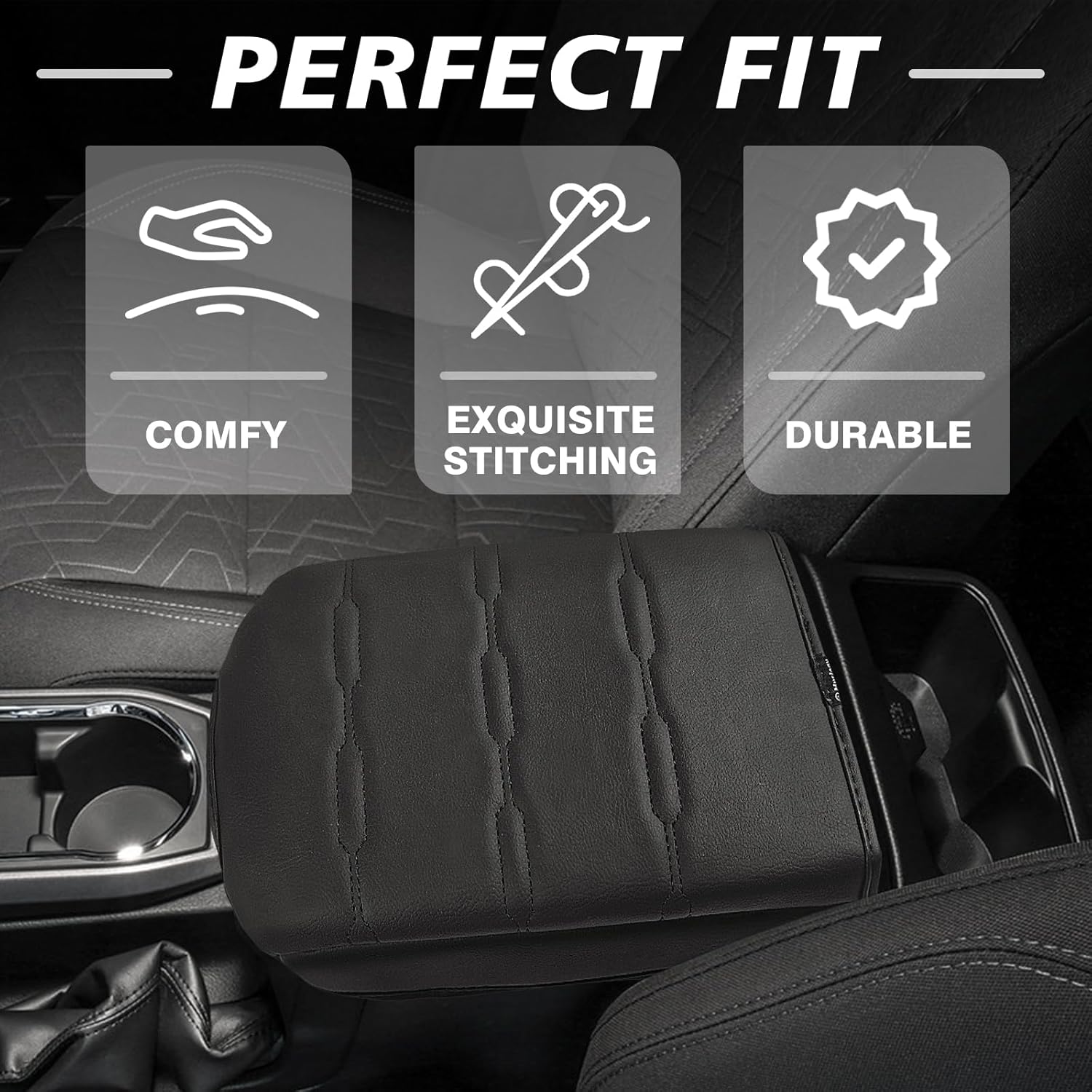 - Unique Design: Designed according to the OEM element to make it match your vehicle perfectly and even better. Our armrest cover is crafted with high-quality Vegan Leather, which is skin-friendly, breathable and soft.