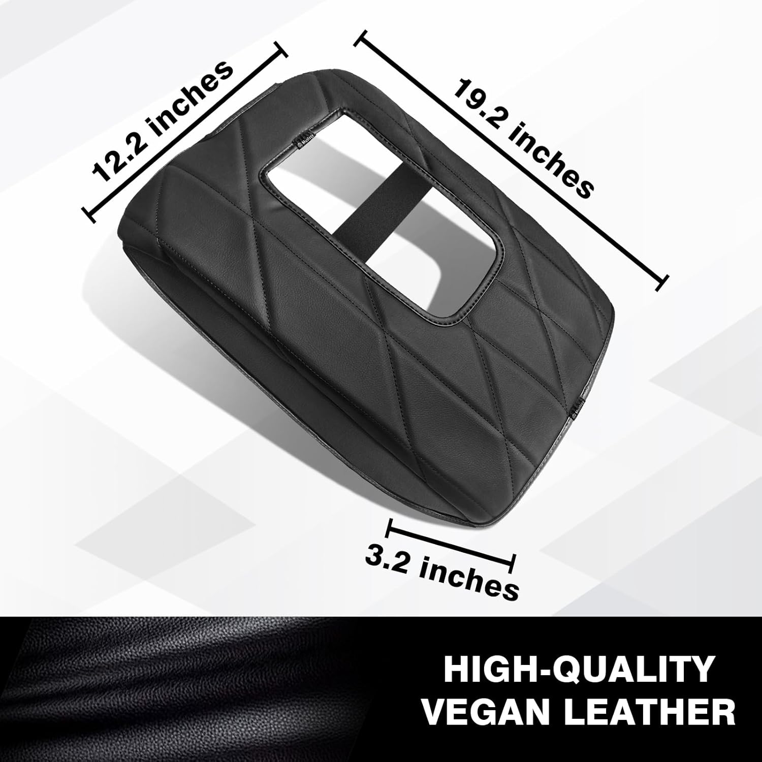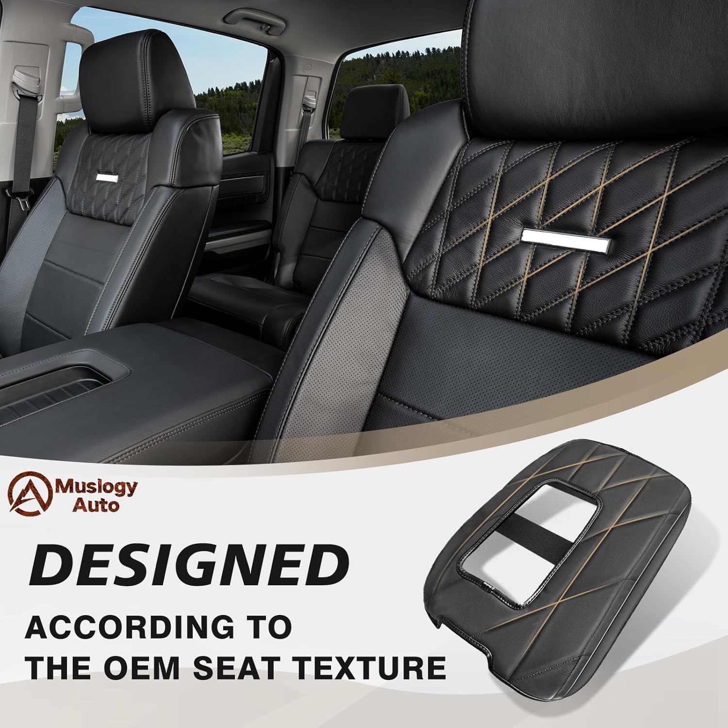 Muslogy Center Console Armrest Cover Compatible with Toyota Tundra 2014-2021 Comfort Armrest Pad Arm Rest Cushion Vegan Leather Protector Regular Thick(Bucket Seat ONLY)
