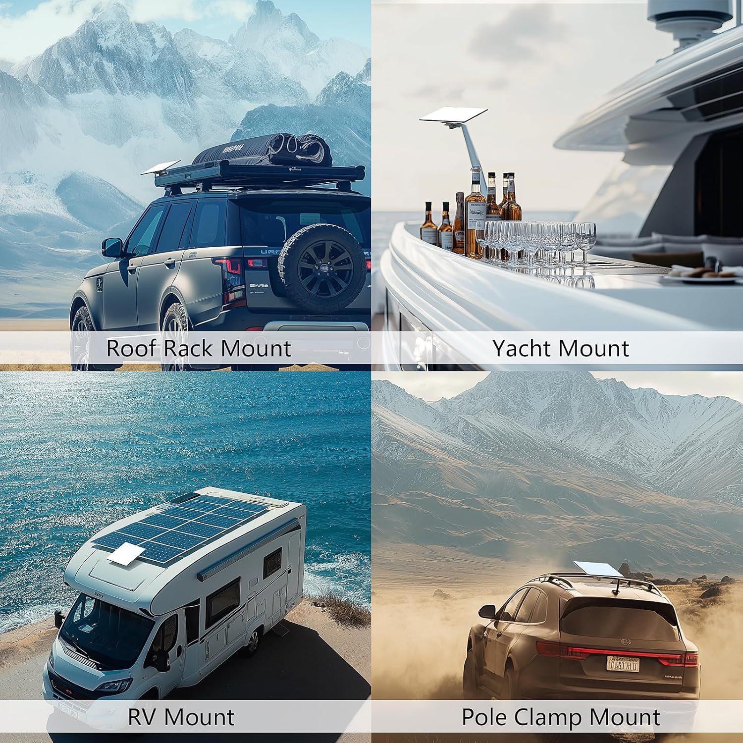 - 【Multi-scene Adaptation】:Securely installed on RV roof racks (0.45"-1.25" and 1.1"-1.85" poles), boat decks, dashboards, or vertical walls. With this mini starlink mount, you can securely fix the mini starlink even in the outdoor area, which makes the mini starlink able to better face to the sky to facilitate better signal reception.