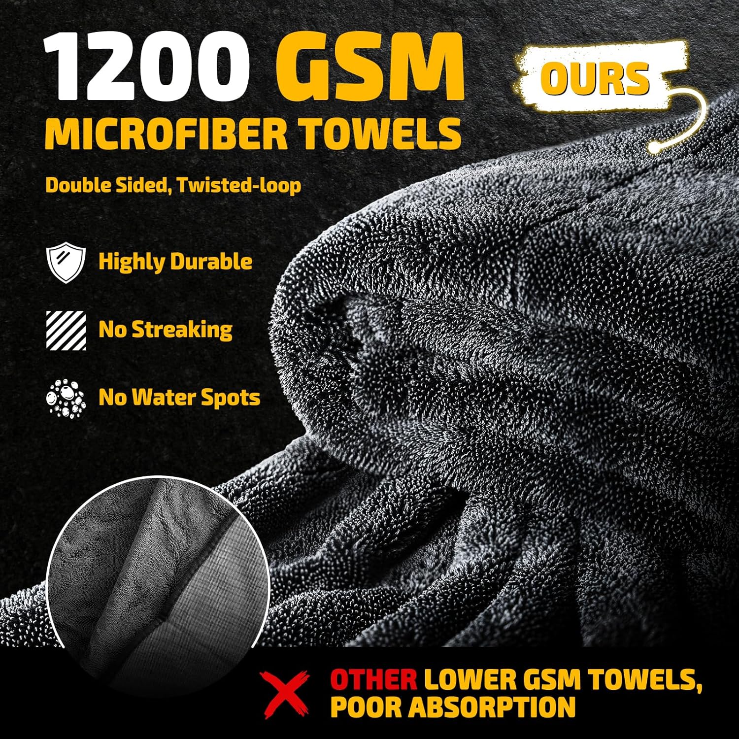- Streak-Free, Spot-Free Drying: With SMINDER’s advanced 1200 GSM microfiber and twisted-loop technology, you’ll enjoy a flawless finish every time. Just one pass and your car is 100% dry, streak-free, and water spot-free. The microfiber towels for cars absorb up to an entire gallon of water, making them perfect for efficient, high-performance drying.