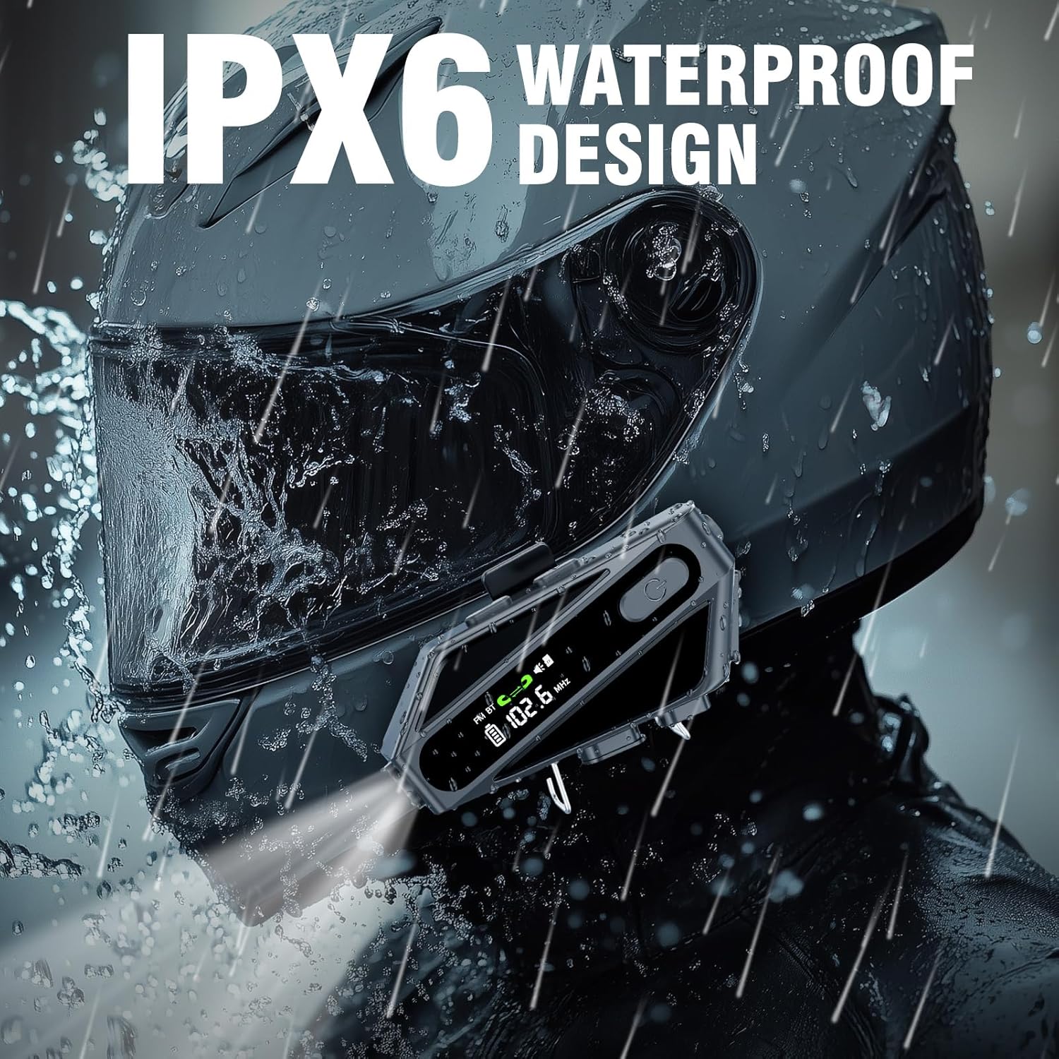 - BT5.3 and IPX6 Waterproof:Bluetooth 5.3 with greater compatibility. C6 Motorcycle Helmet Speakers IPX6 waterproof rating to help you cope with more weather conditions. Activate C6 voice assistant with a single click, making hands-free calls, controlling music playback, and accessing GPS directions effortlessly.