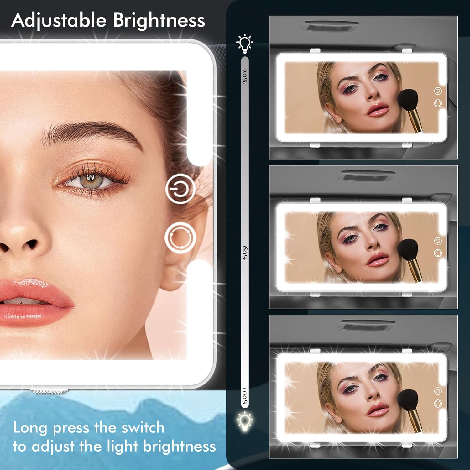 Car Sun Visor Vanity Mirror,Dimmable Makeup Mirror for Car Visor,Rechargeable Led Light with 3 Modes,White