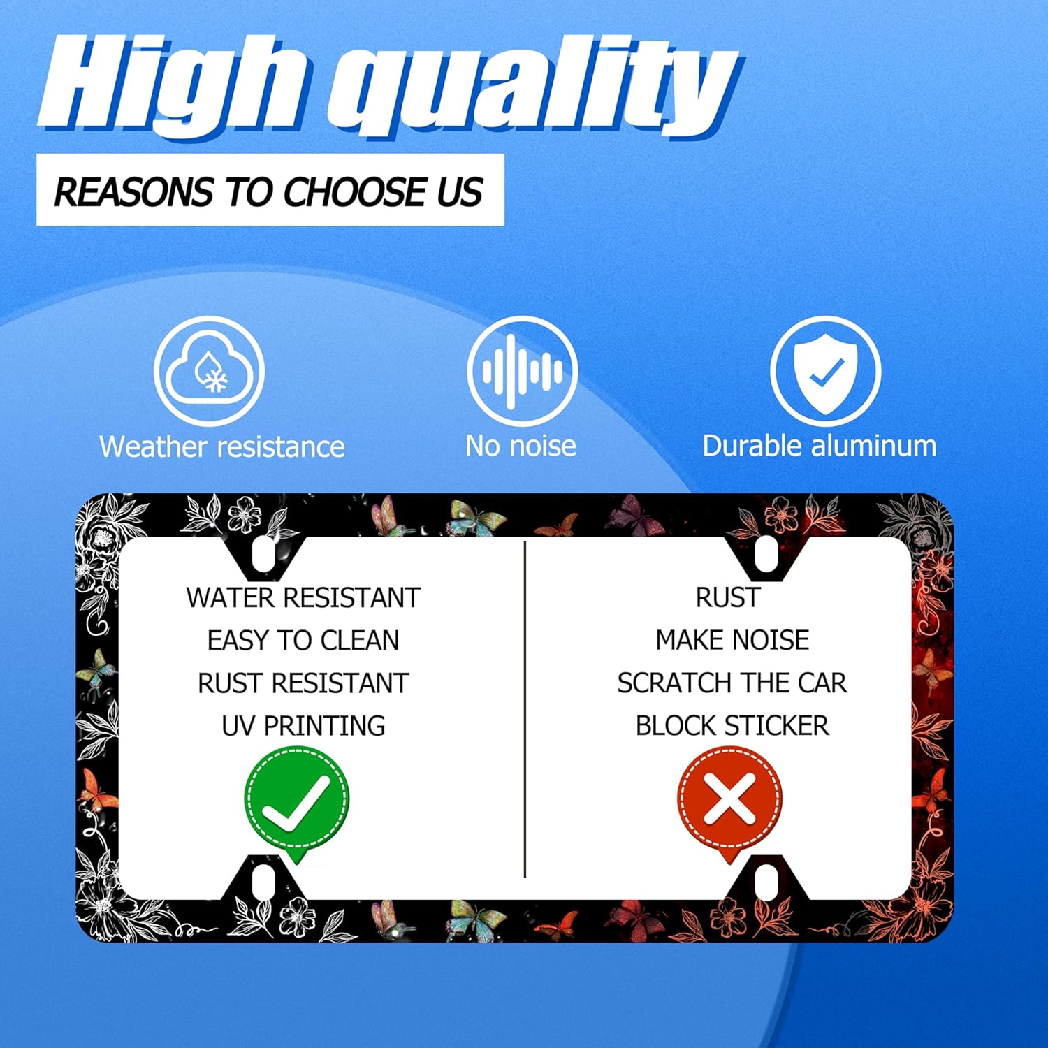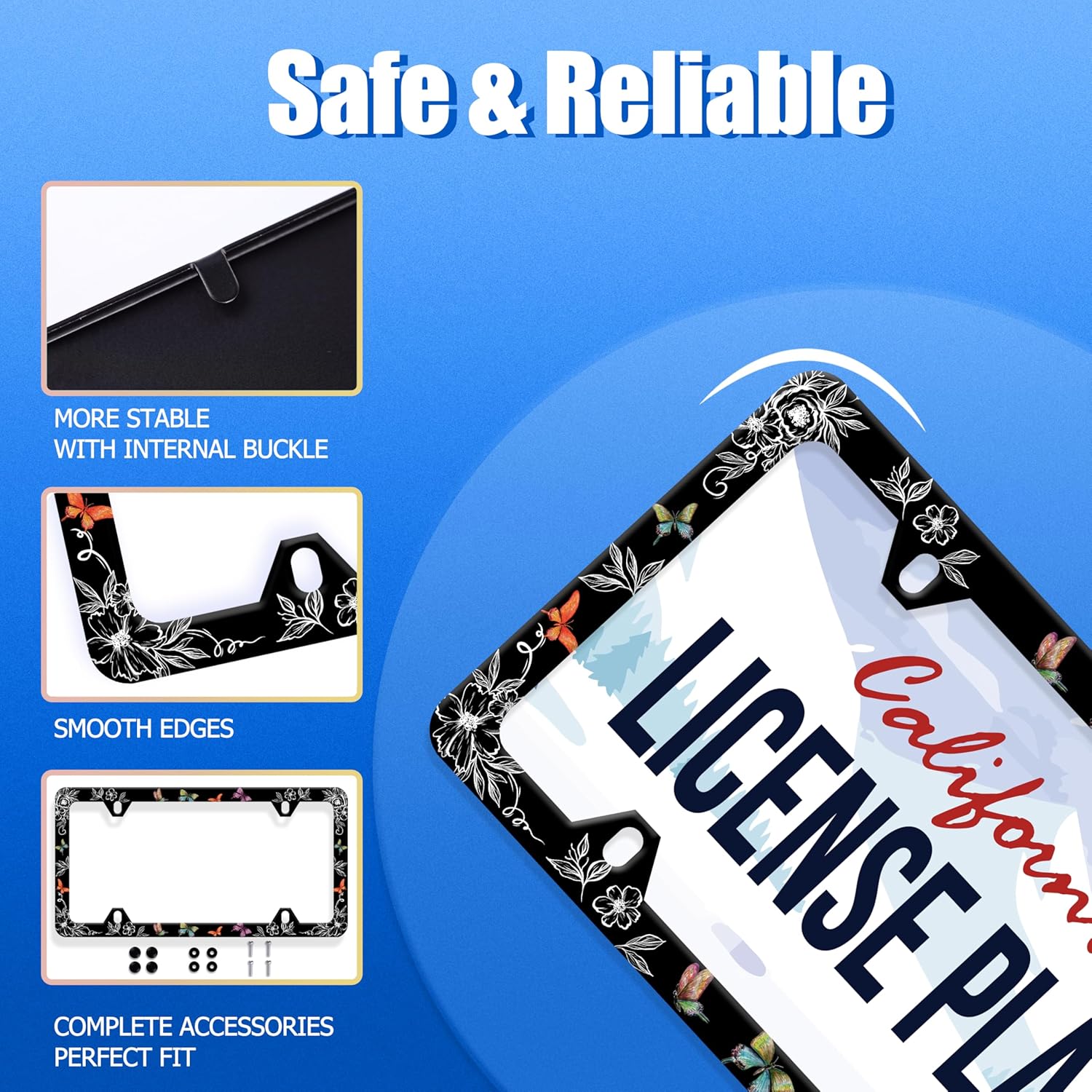 Butterfly License Plate Frame Wild Flower License Plate Holder Stainless Steel Women Colorful Car Accessory Decoration