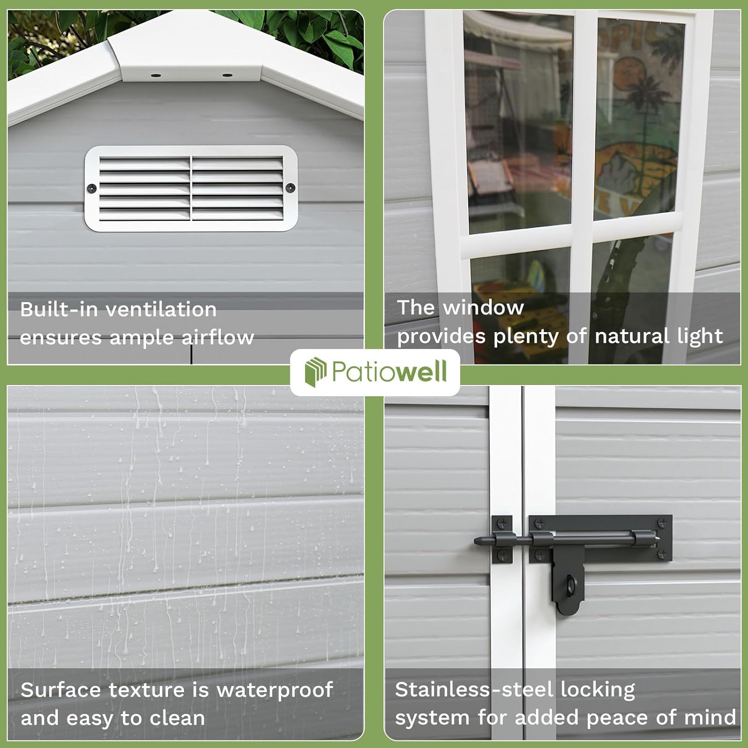 - Spacious Storage: Patiowell 6x4FT Resin Outdoor Storage Shed, a versatile and durable storage solution for your outdoor space. Constructed from durable resin material, this shed is built to withstand the elements and protect your belongings year-round.