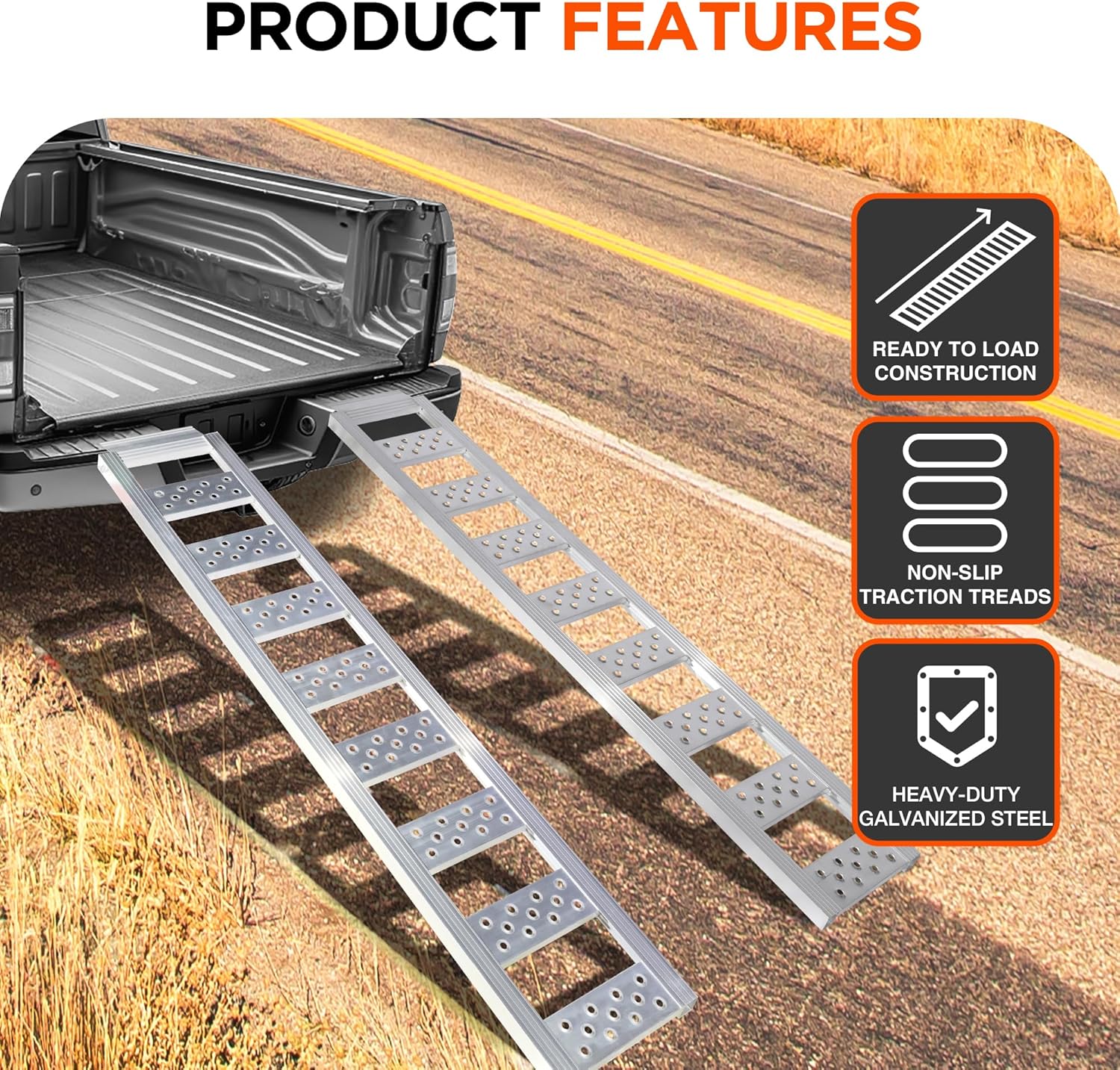 - HEAVY-DUTY ALUMINUM CONSTRUCTION: Built to last, these ramps are crafted from high-strength aluminum, ensuring they can handle even the toughest tasks, supporting up to 1250 LBS loading weight.