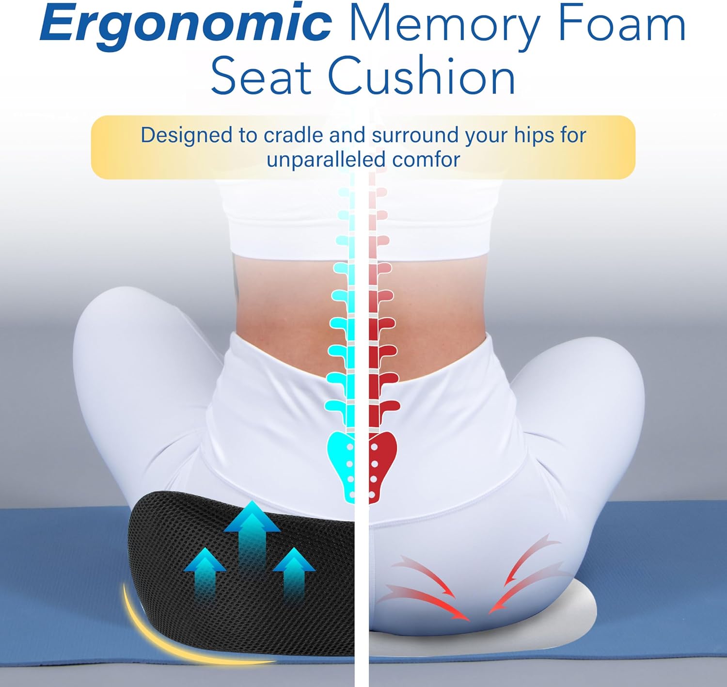 - Ergonomic Seat Cushion & Optimal Driving Comfort - Upgraded “U”shaped cushion is specially designed for comfy and health. Larger and thicker, perfectly cradles your butt, provides comprehensive support. High-density memory foam car seat cushion relieves sciatica, lower back, tailbone pain